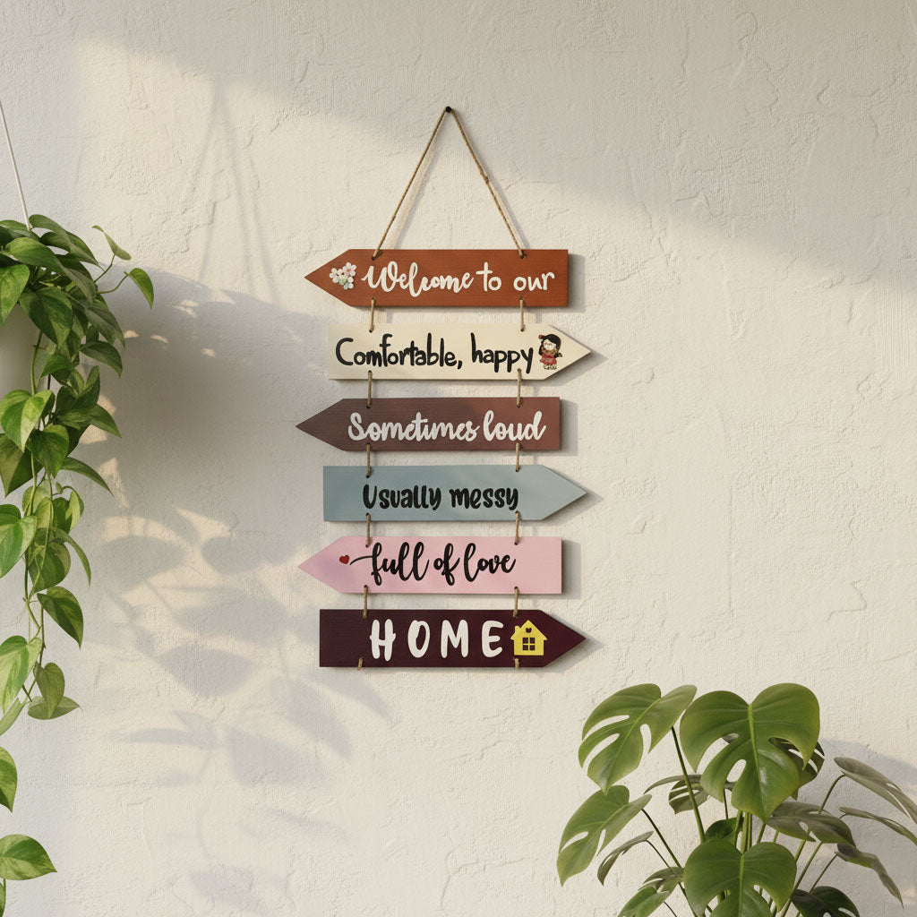 Hut-Shaped Hand-Painted Wooden Name Plate For Home - Hut Board & Three Planks Design 6