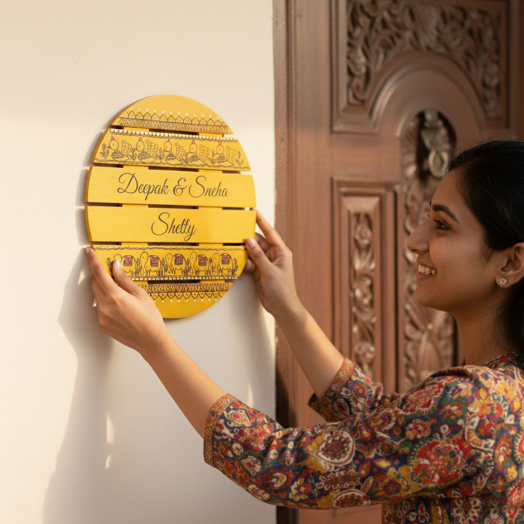 Hut-Shaped Hand-Painted Wooden Name Plate For Home - Hut Board & One Plank Design 2