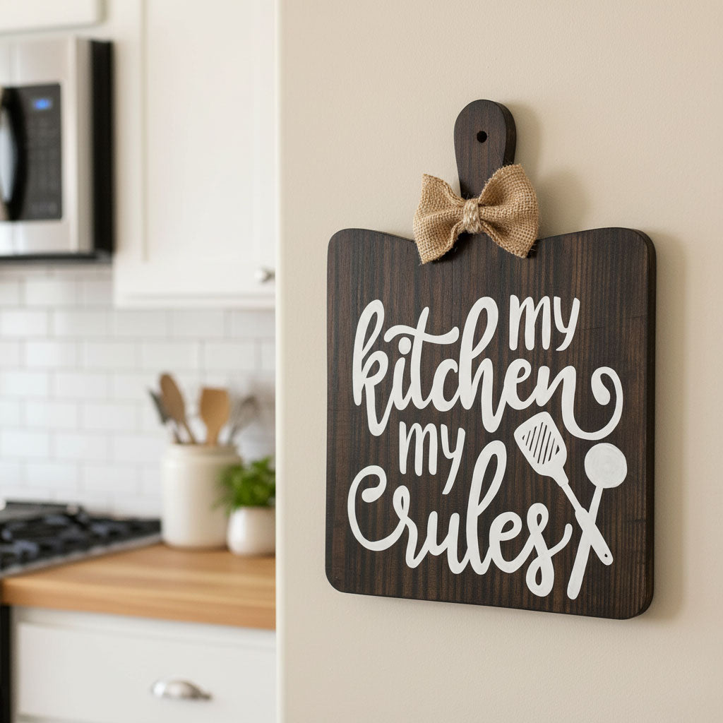 My Kitchen My Rules Hand-Painted Wooden Chopping Board Kitchen Wall Hanging - Wooden Finish