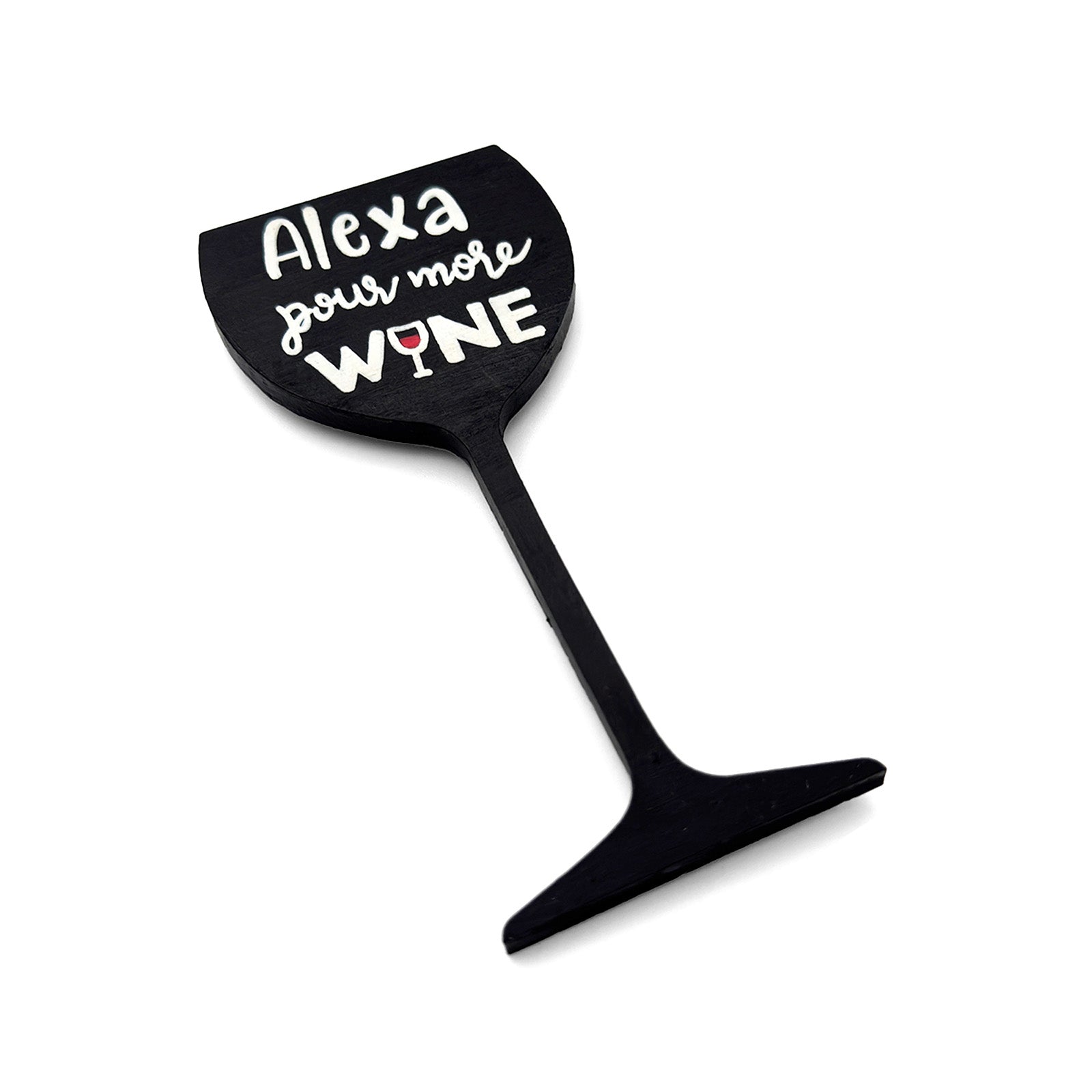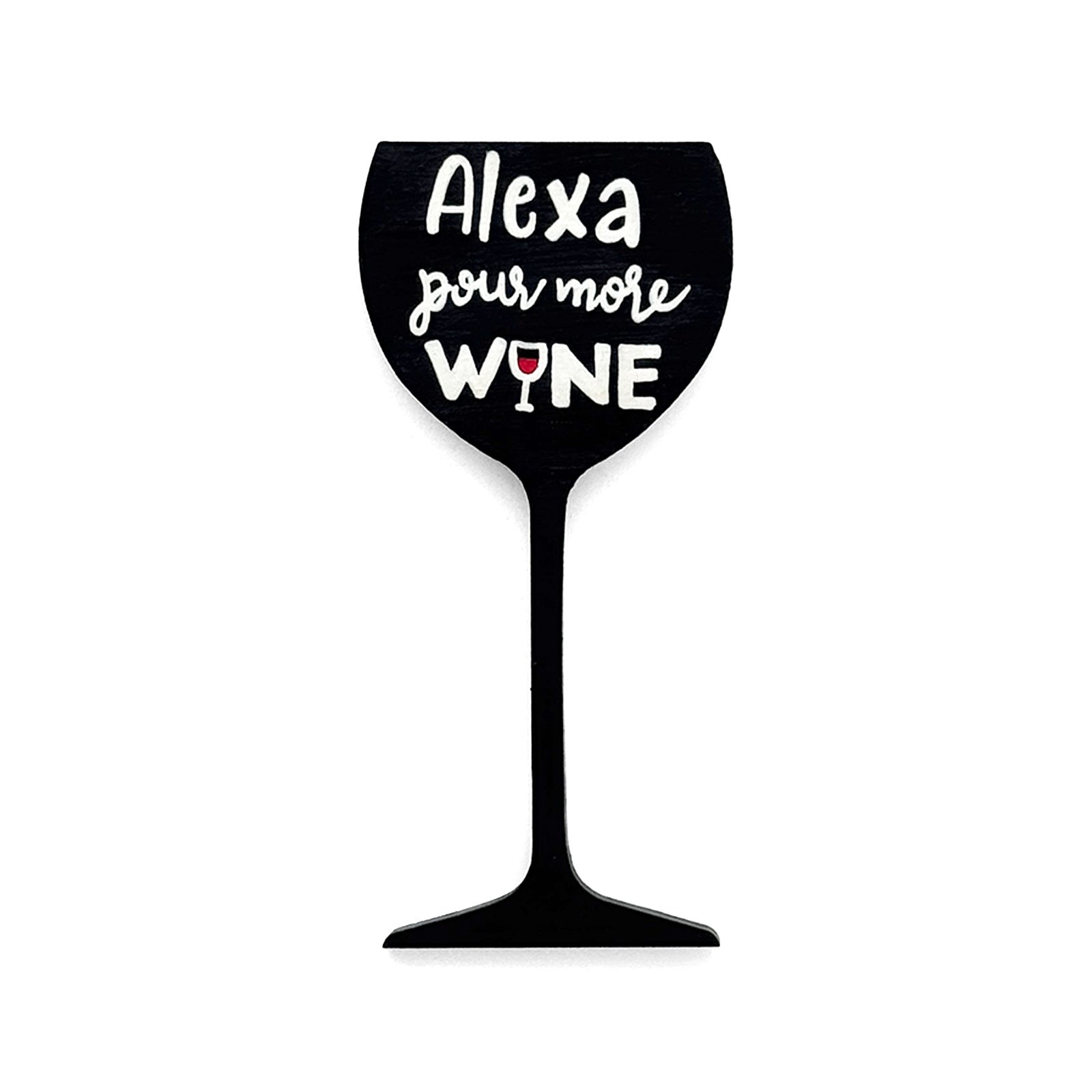 Alexa Pour More Wine Hand-Painted Wooden Wine Glass Fridge Magnet - Black