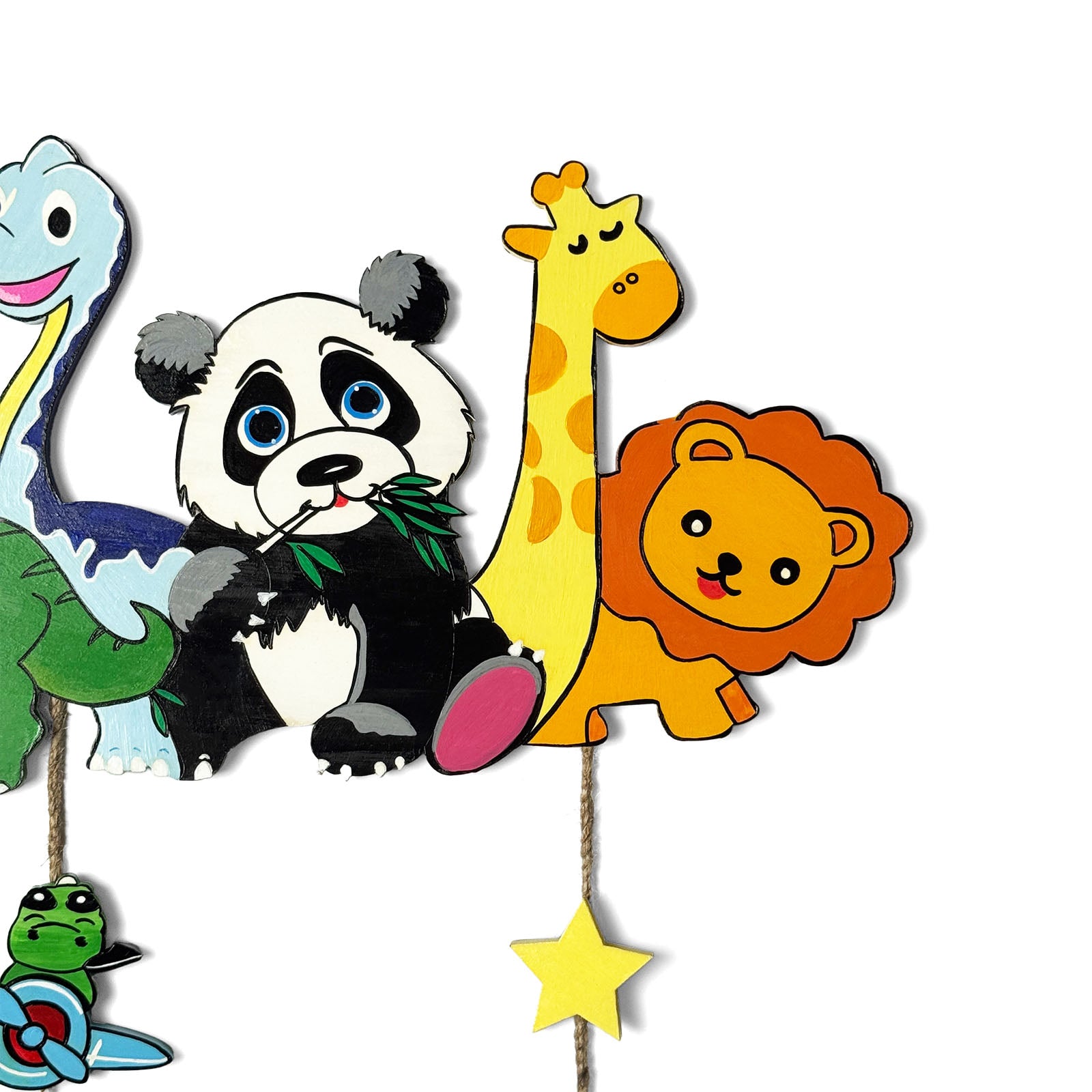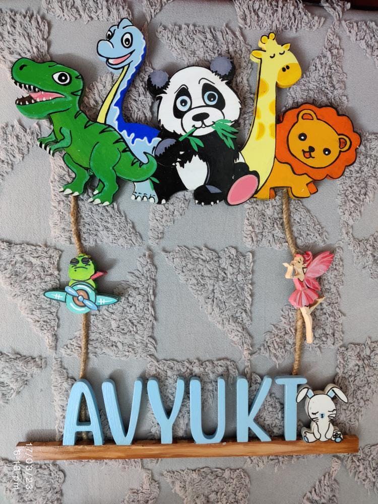 - Add a charming touch to your kid’s room with this adorable animal and dinosaur-themed nameplate.