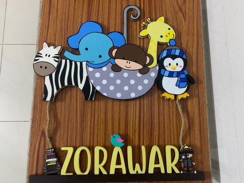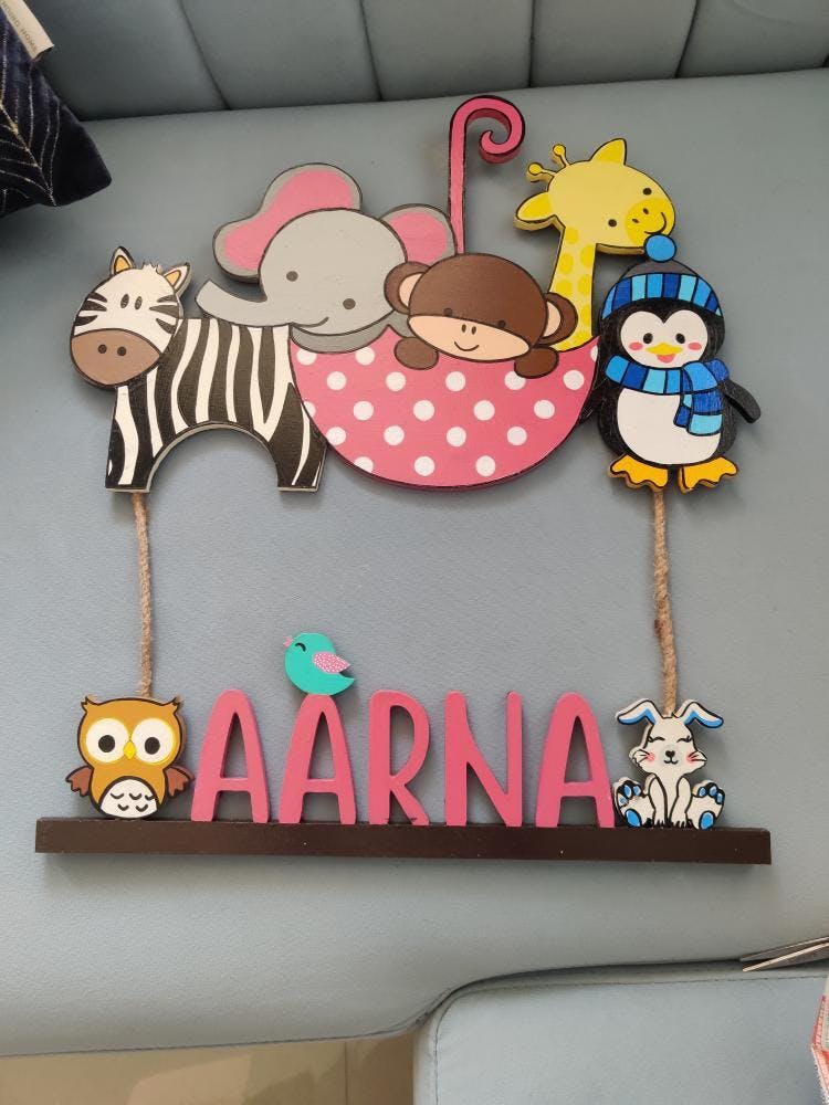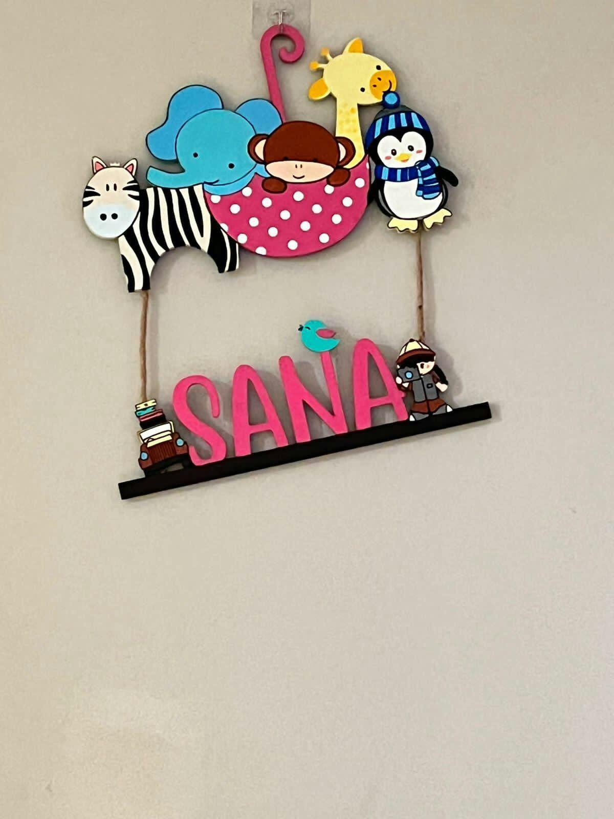 - Add a charming touch to your kid’s room with this adorable animal-themed nameplate.