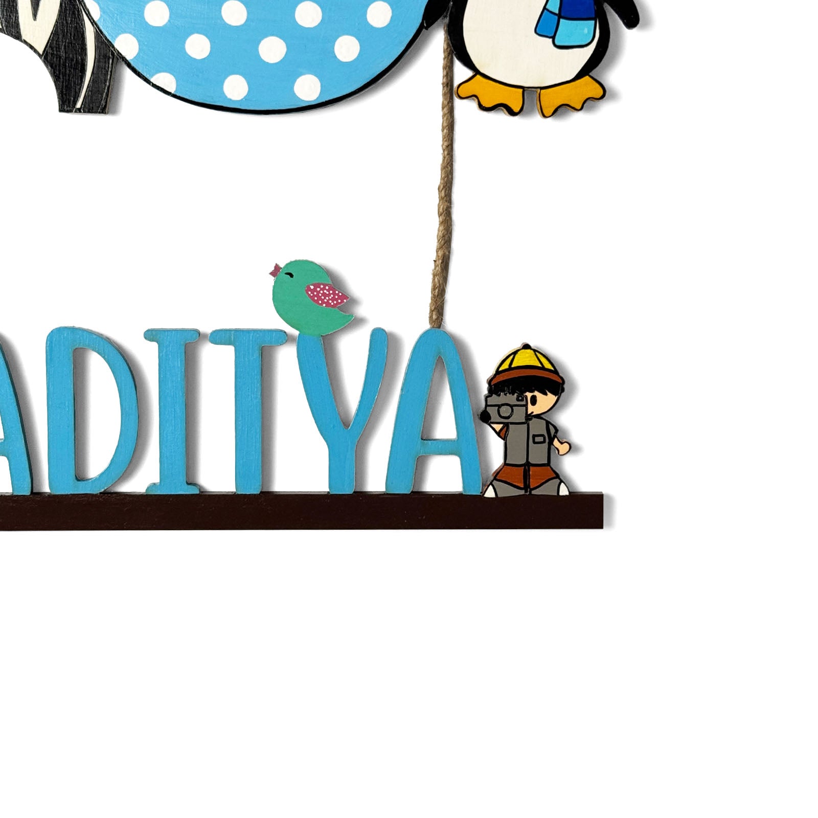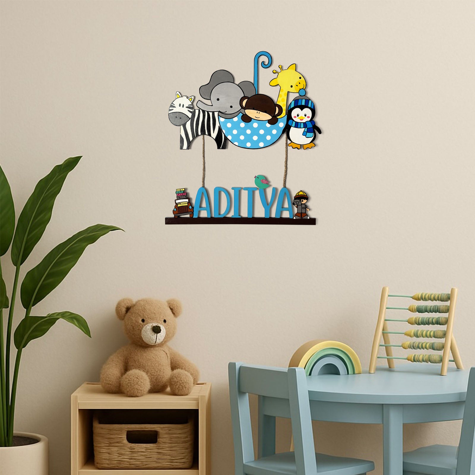 Animal Themed Hand-Painted Wooden Kids Name Plate - Design 1