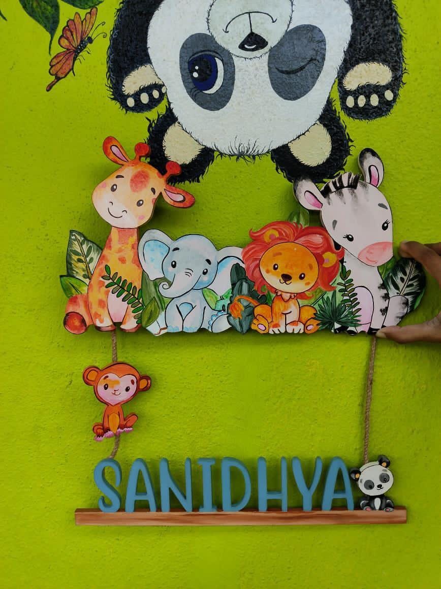 - Add a charming touch to your kid’s room with this adorable animal-themed nameplate.
