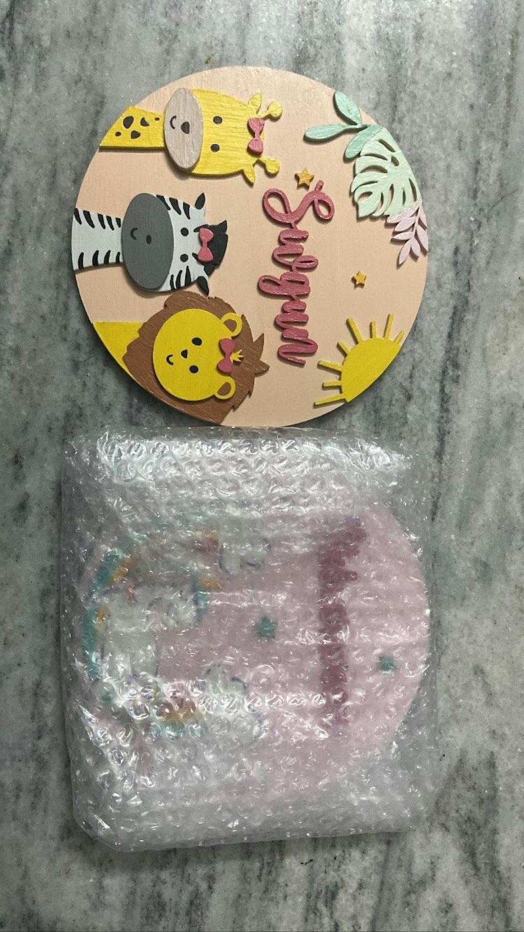 - Add a charming touch to your kid’s room with this adorable animal-themed nameplate.