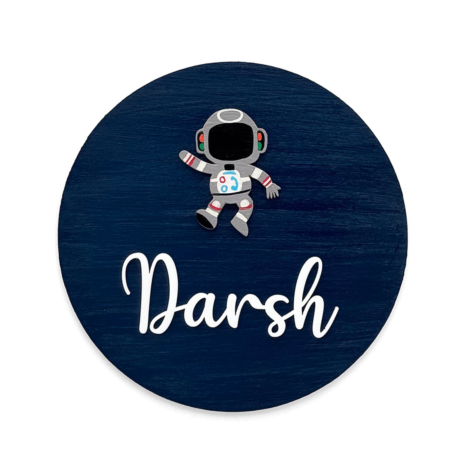- Add a charming touch to your kid’s room with this adorable astronaut-themed nameplate.