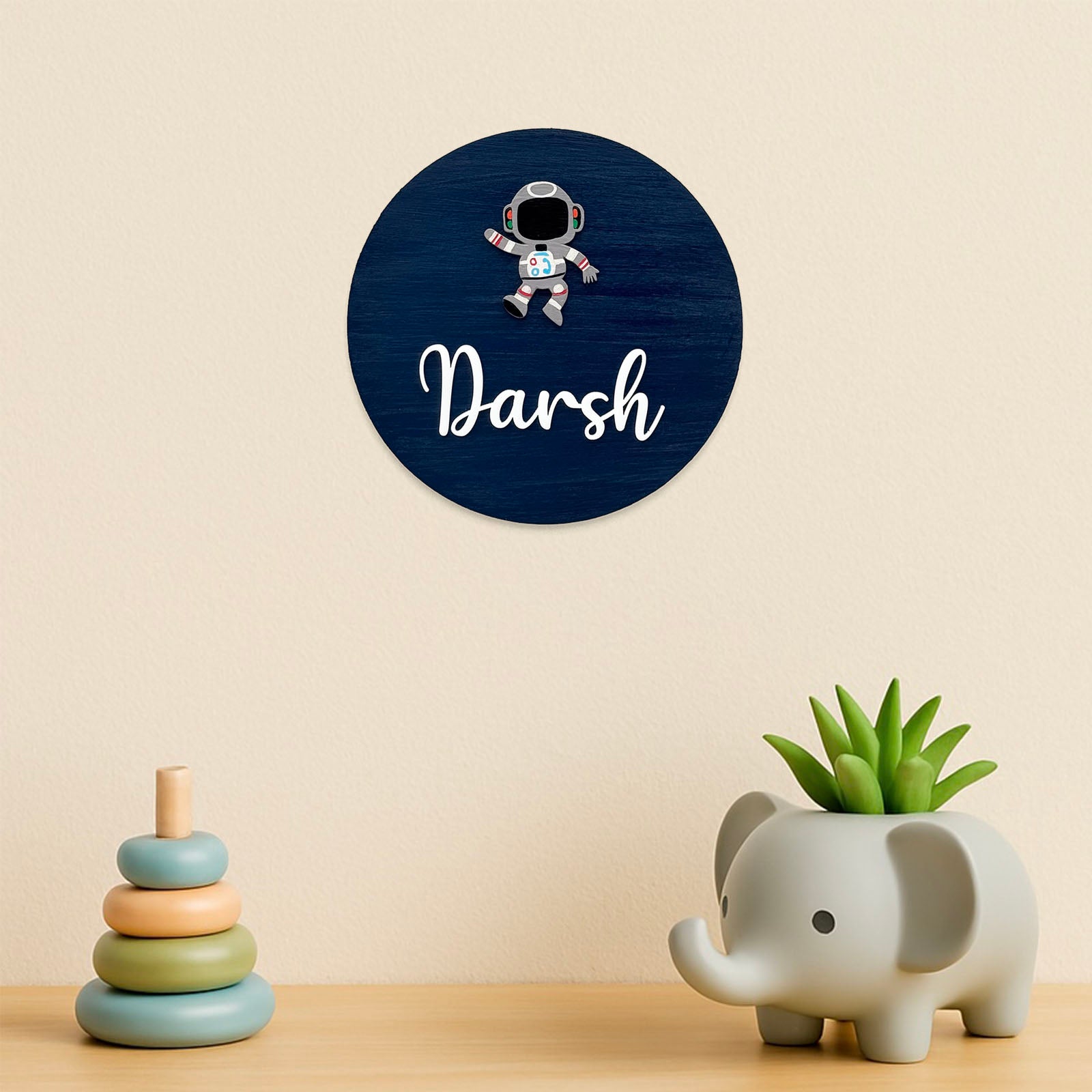 Astronaut Themed Hand-Painted Wooden Mini Kids Name Plate