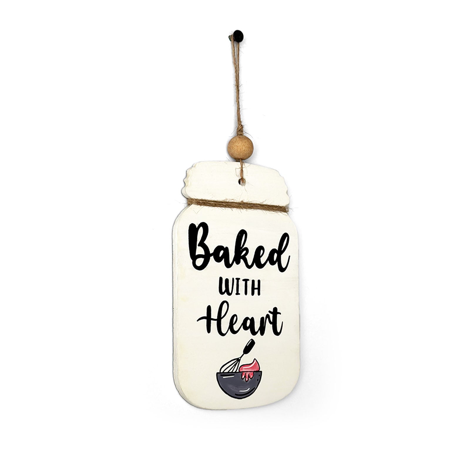 Baked With Heart Hand-Painted Wooden Jar Kitchen Wall Hanging - White