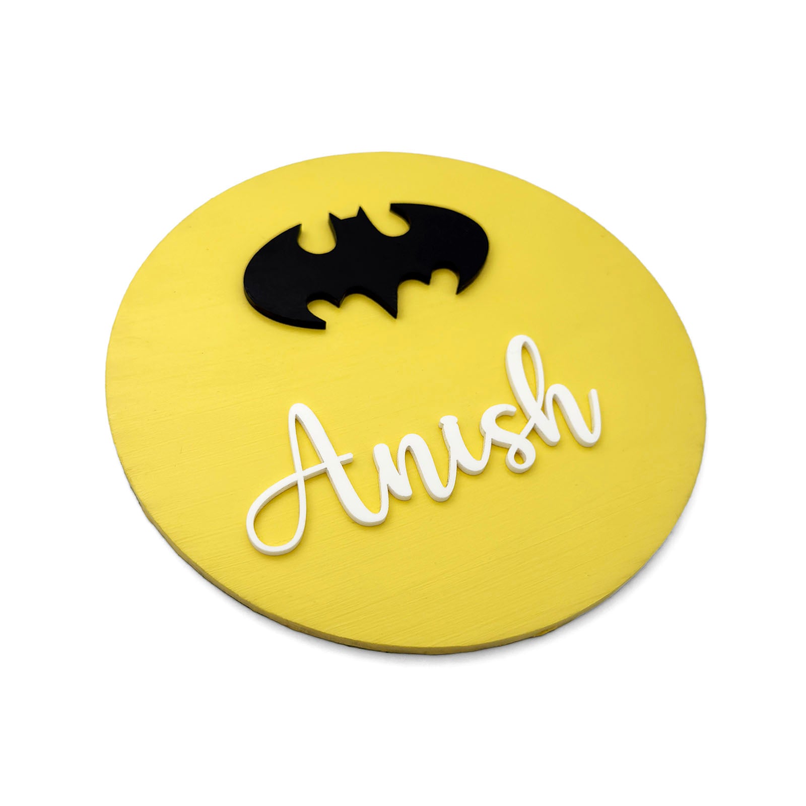 Batman Themed Hand-Painted Wooden Mini Kids Name Plate