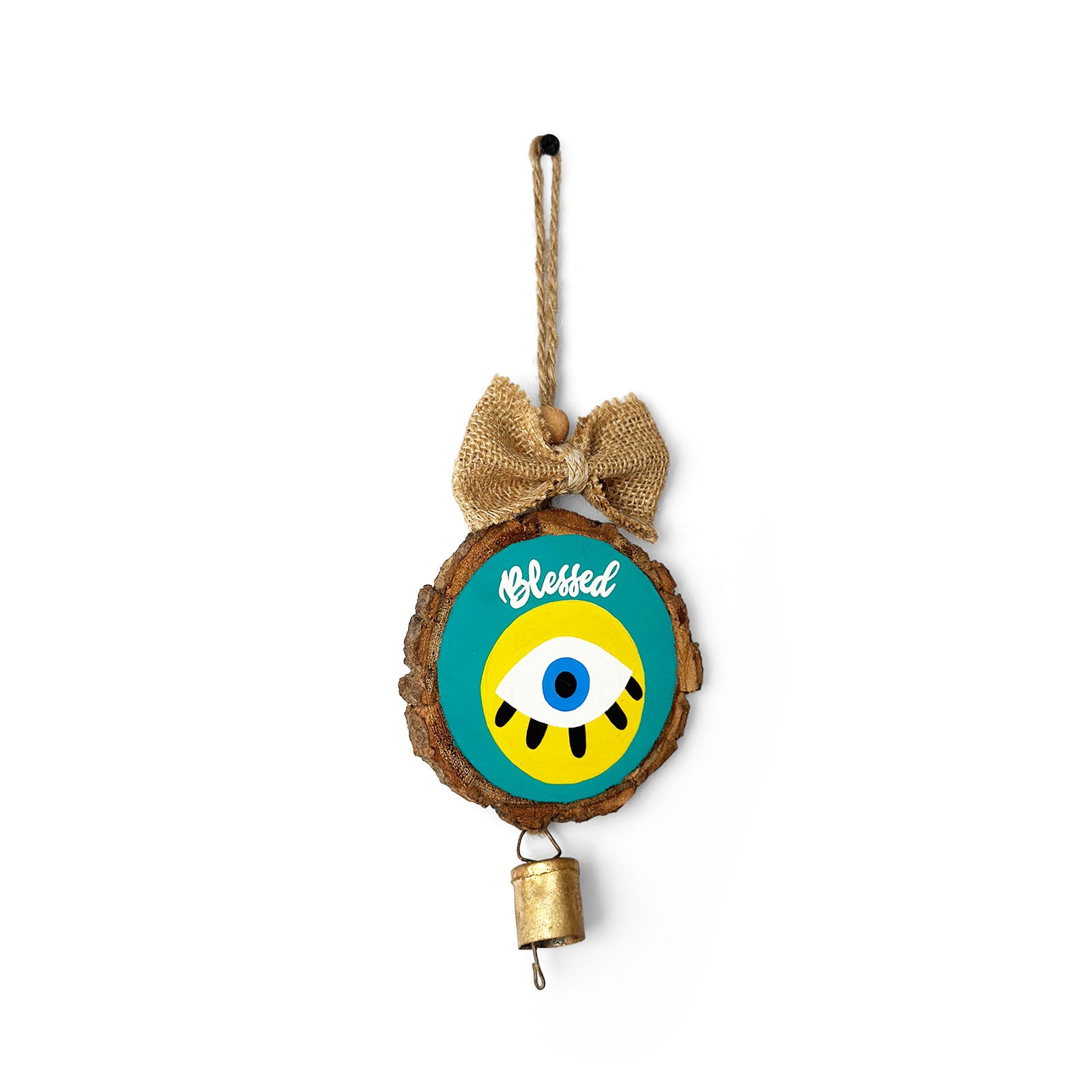 Blessed Evil Eye Hand-Painted Wooden Log Wall Hanging