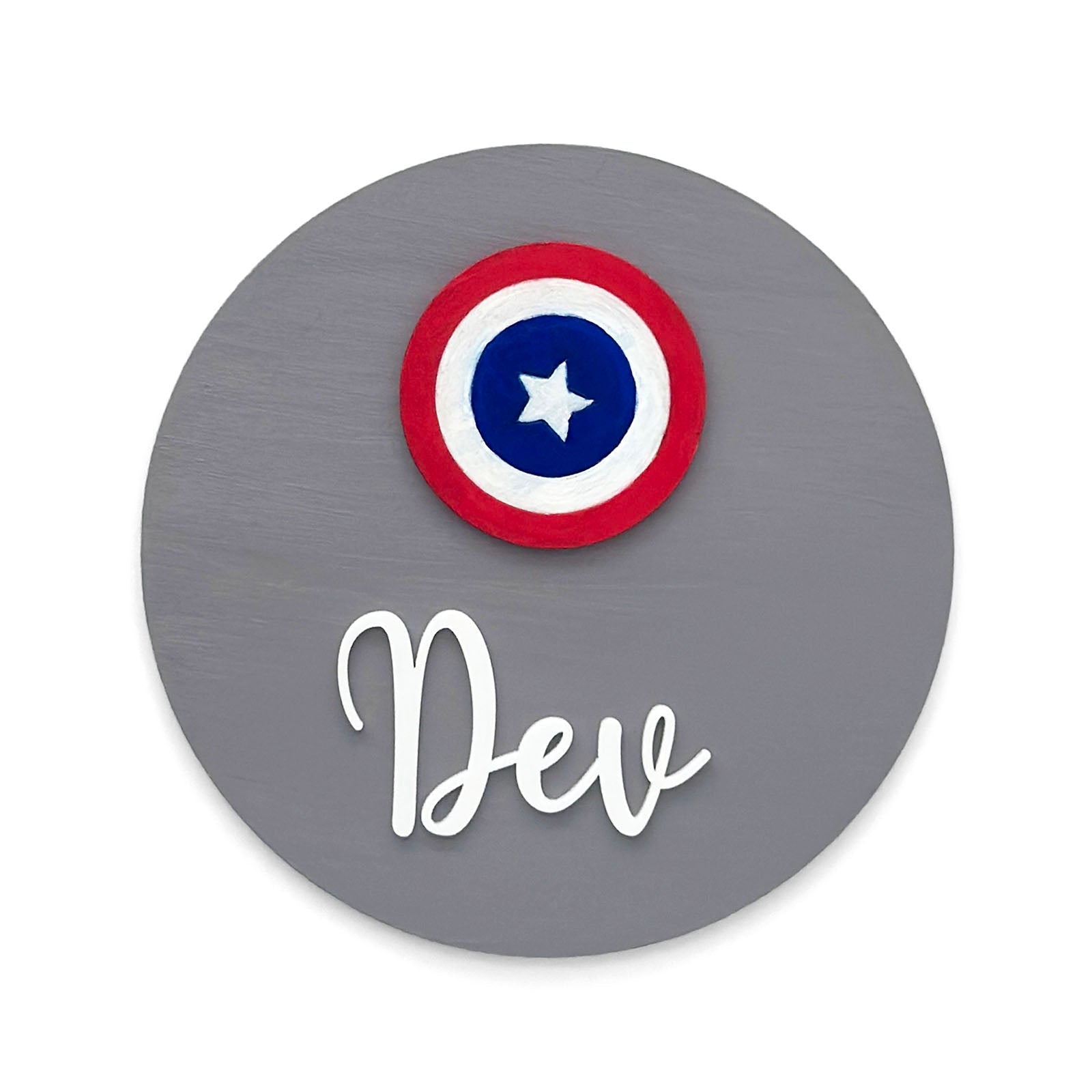 - Add a charming touch to your kid’s room with this adorable Captain America-themed nameplate.