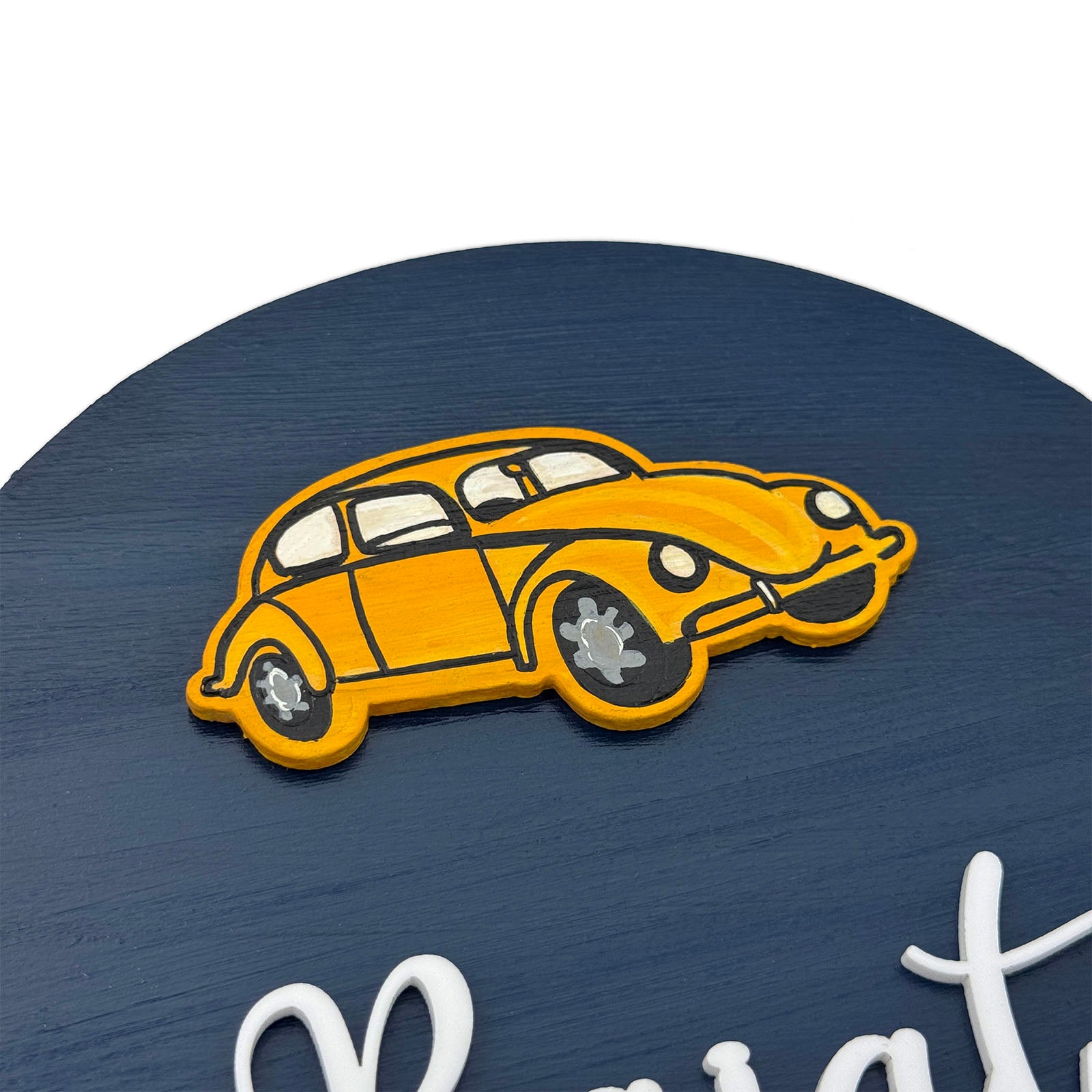 - Add a charming touch to your kid’s room with this adorable car-themed nameplate.