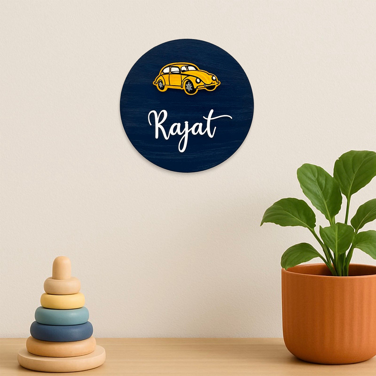 Car Themed Hand-Painted Wooden Mini Kids Name Plate
