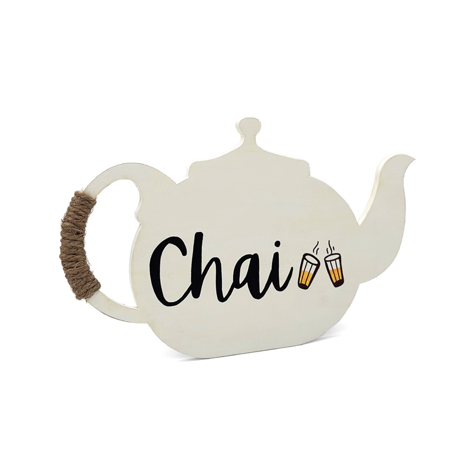 Chai Hand-Painted Wooden Kettle Kitchen Wall Hanging - White