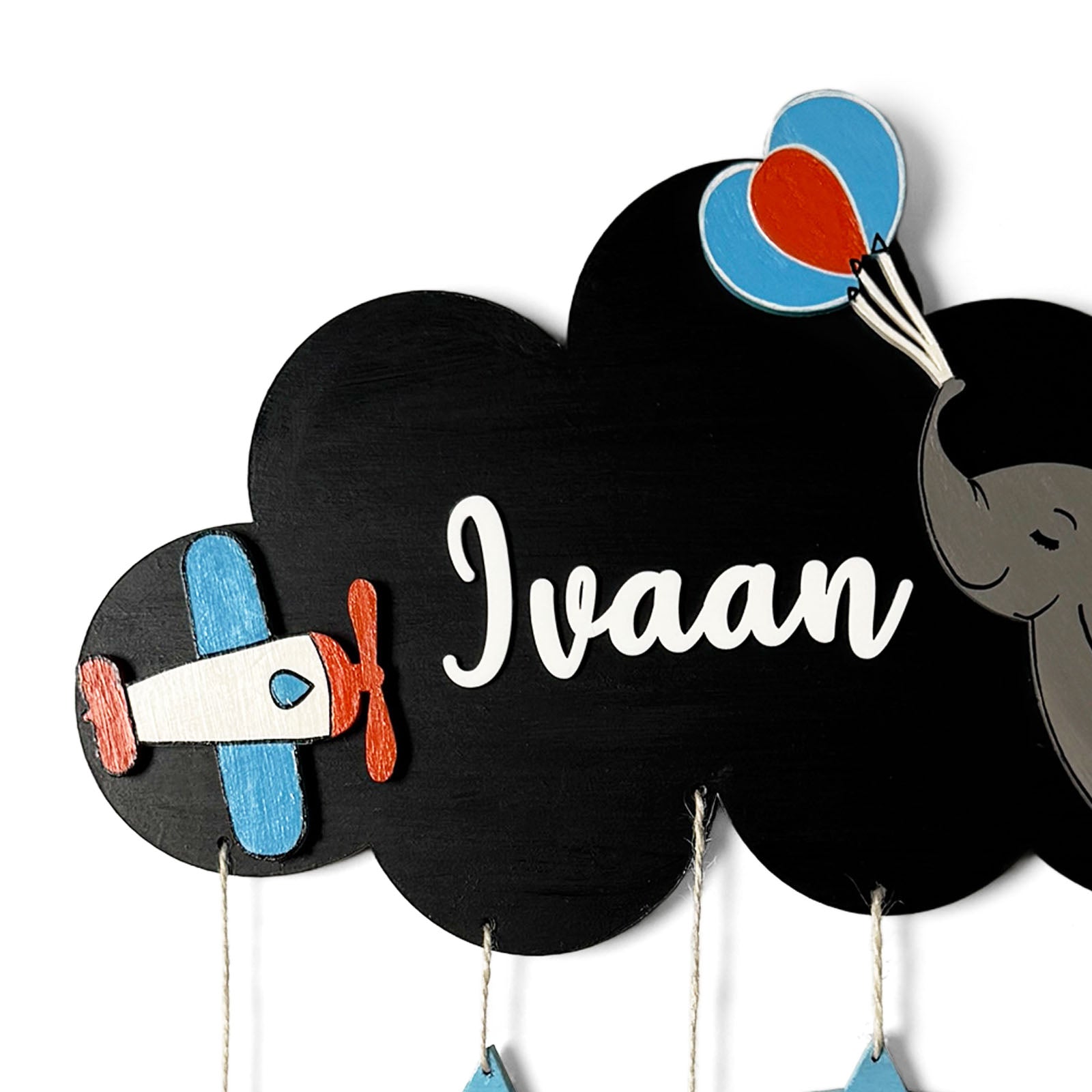 Cloud & Elephant Themed Hand-Painted Wooden Kids Name Plate