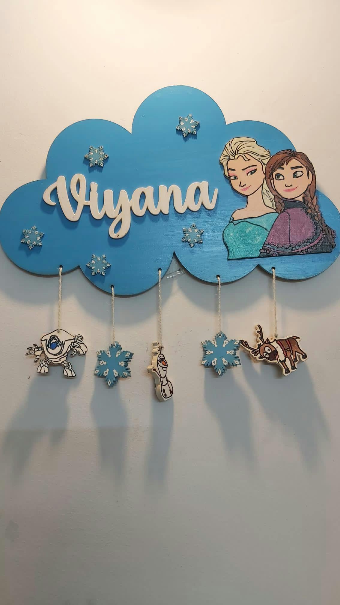 - Add a charming touch to your kid’s room with this adorable cloud and Frozen-themed nameplate.