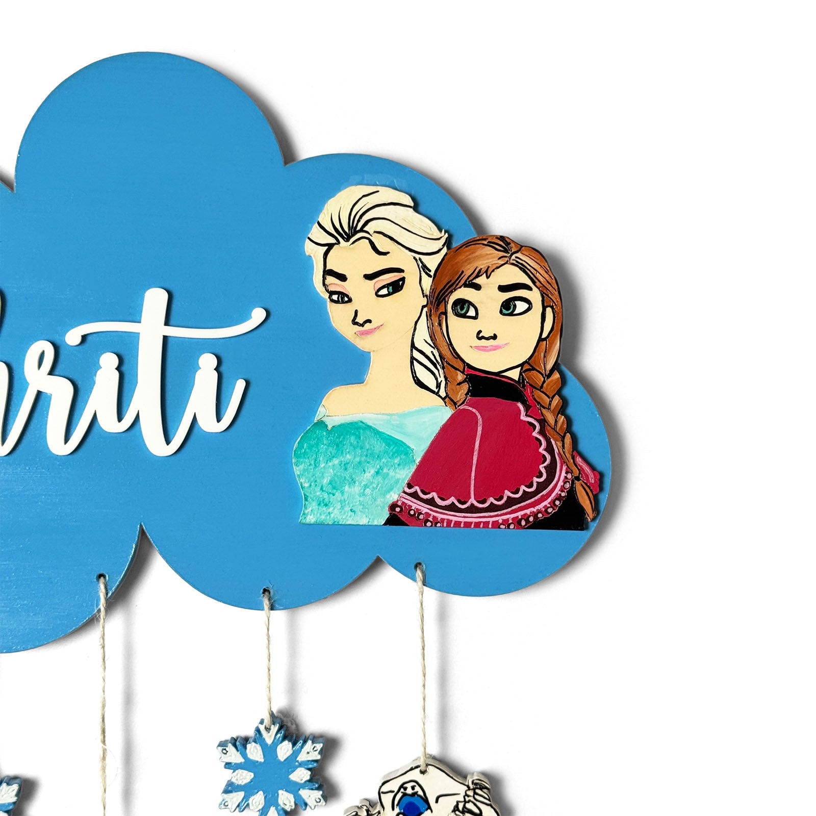 Cloud & Frozen Themed Hand-Painted Wooden Kids Name Plate