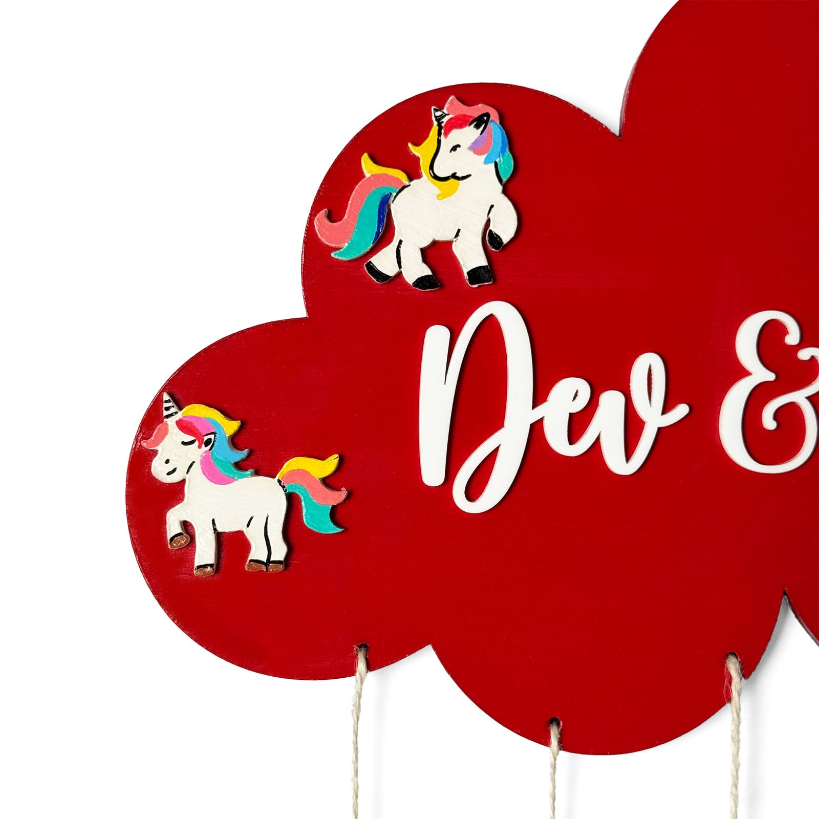 - Add a charming touch to your kid’s room with this adorable nameplate, featuring a delightful combination of cloud, unicorn, car, and animal themes.