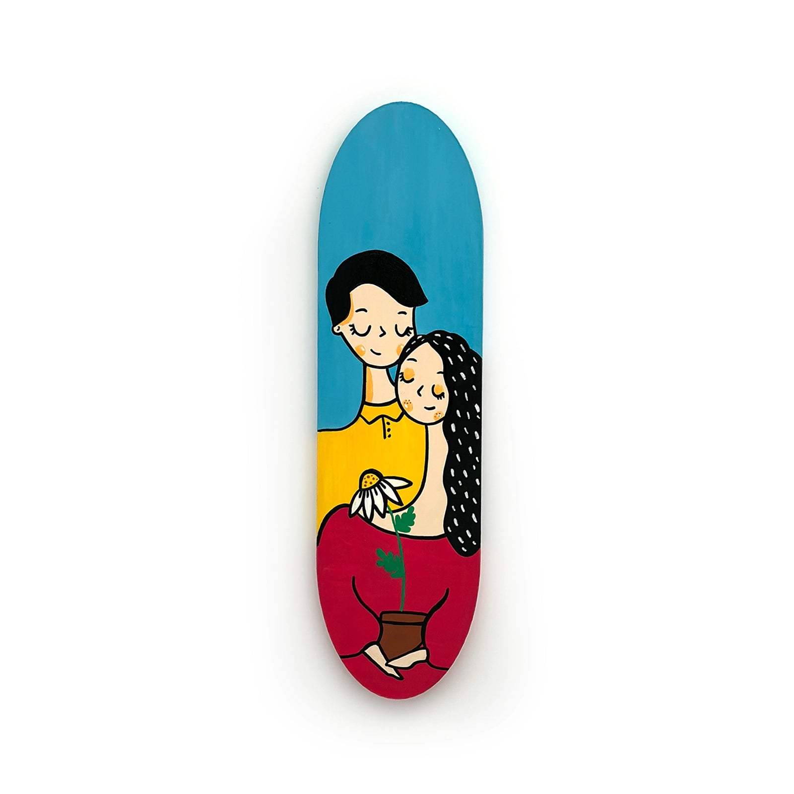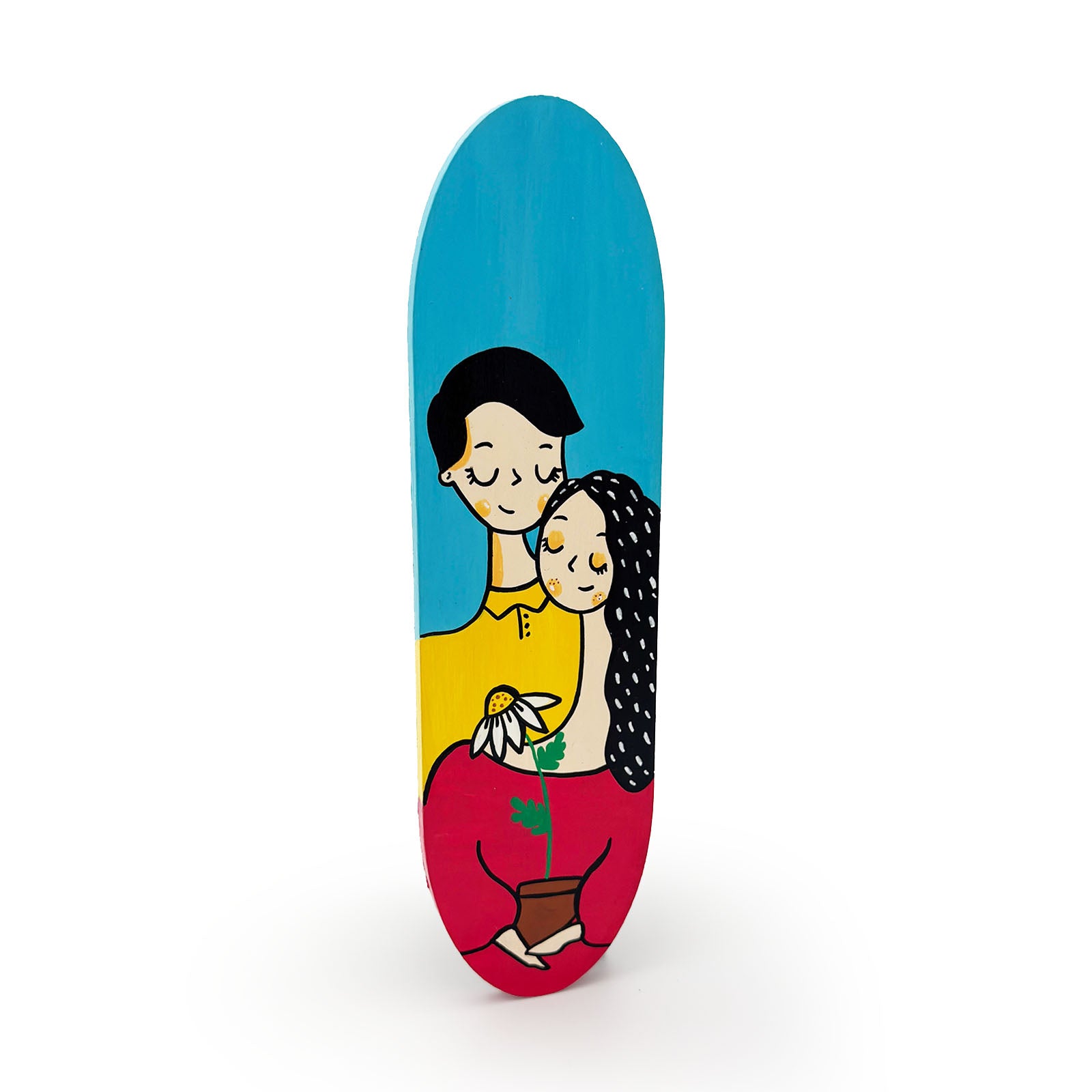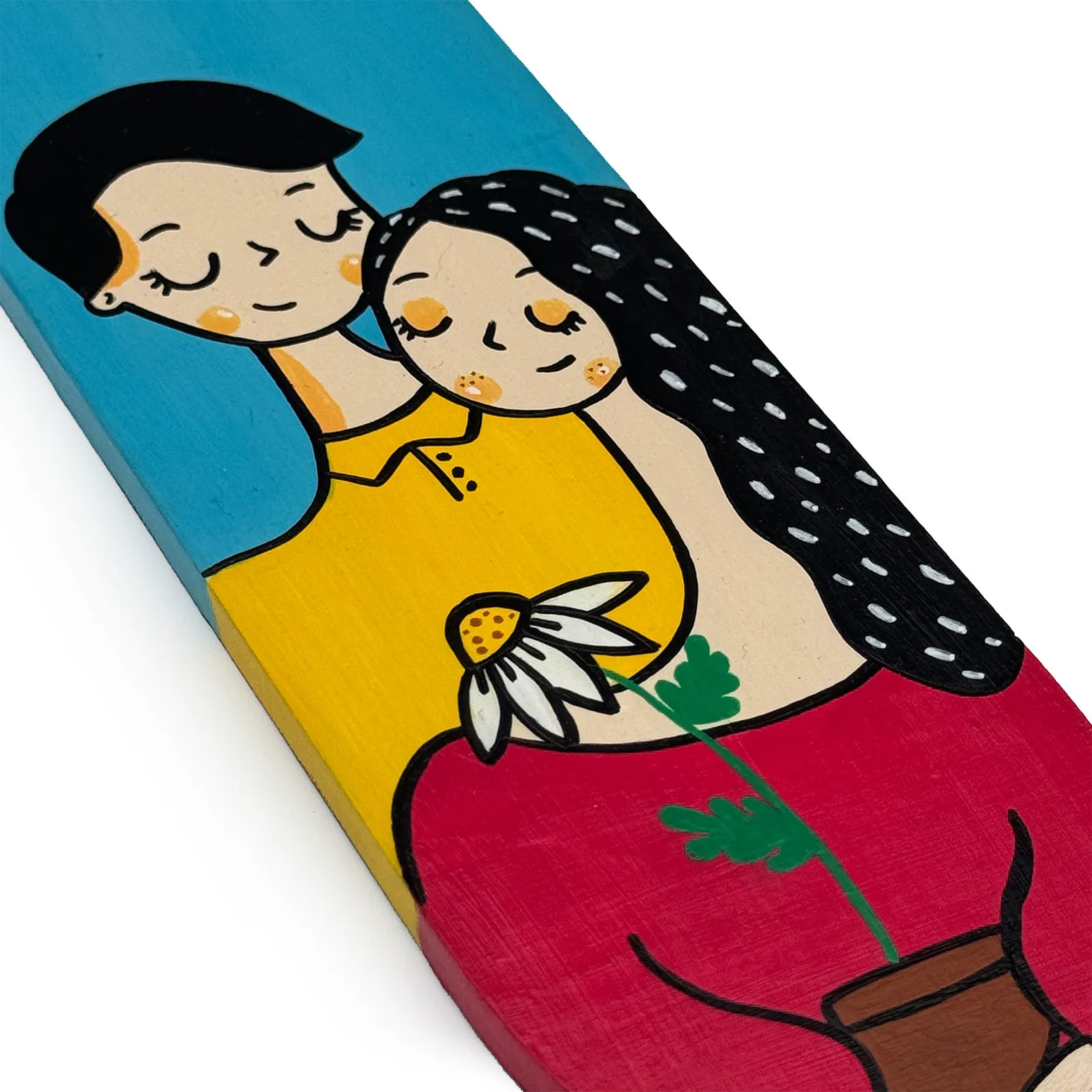 Couple Hand-Painted Wooden Oval Wall Hanging