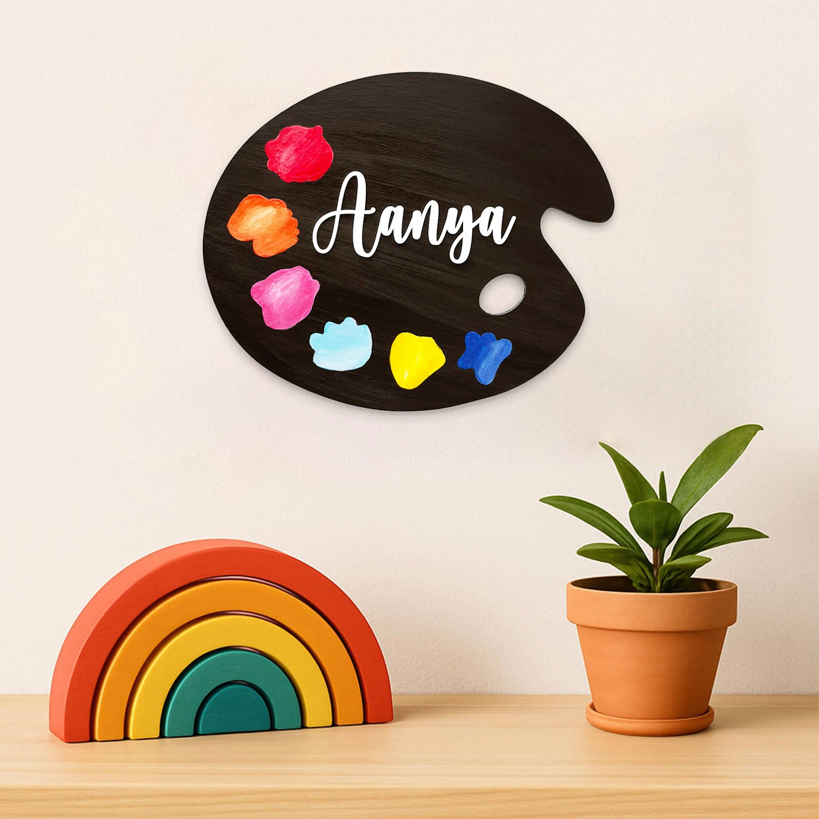 Painting Themed Hand-Painted Wooden Kids Name Plate