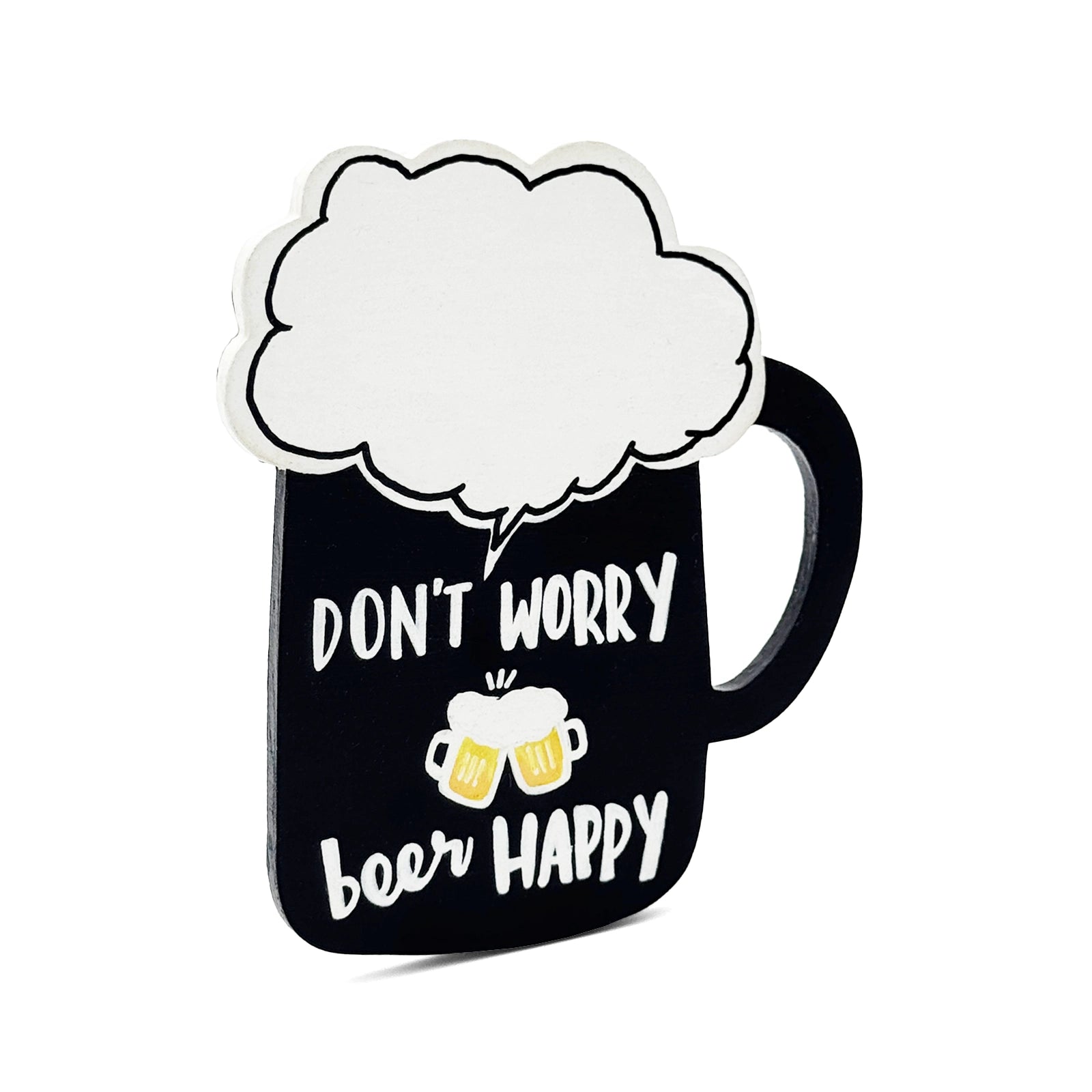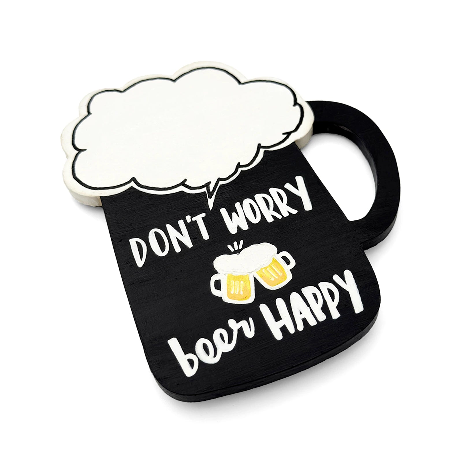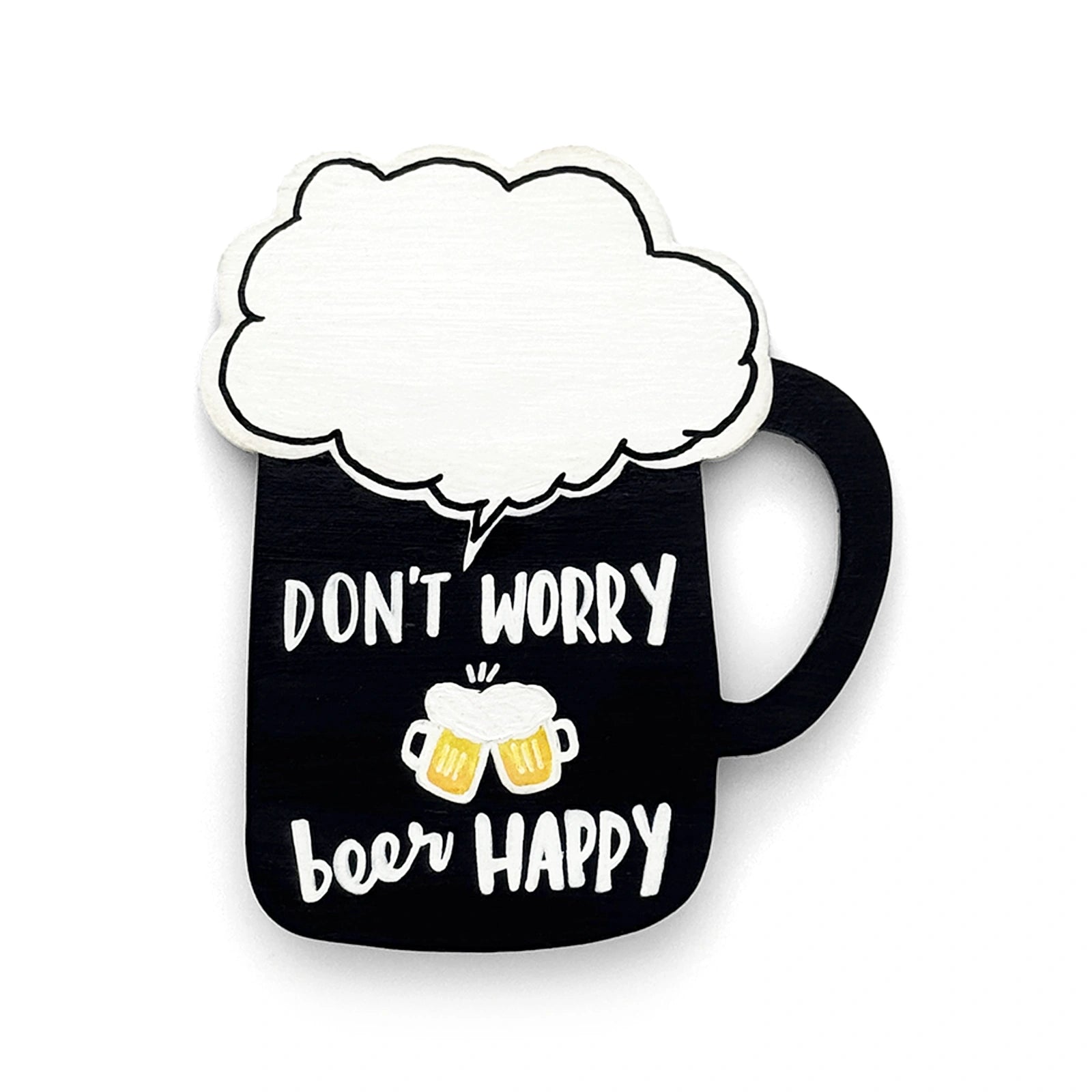 Don't Worry Beer Happy Hand-Painted Wooden Beer Mug Fridge Magnet - Black