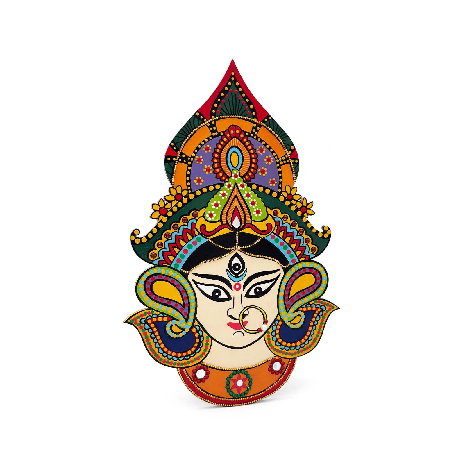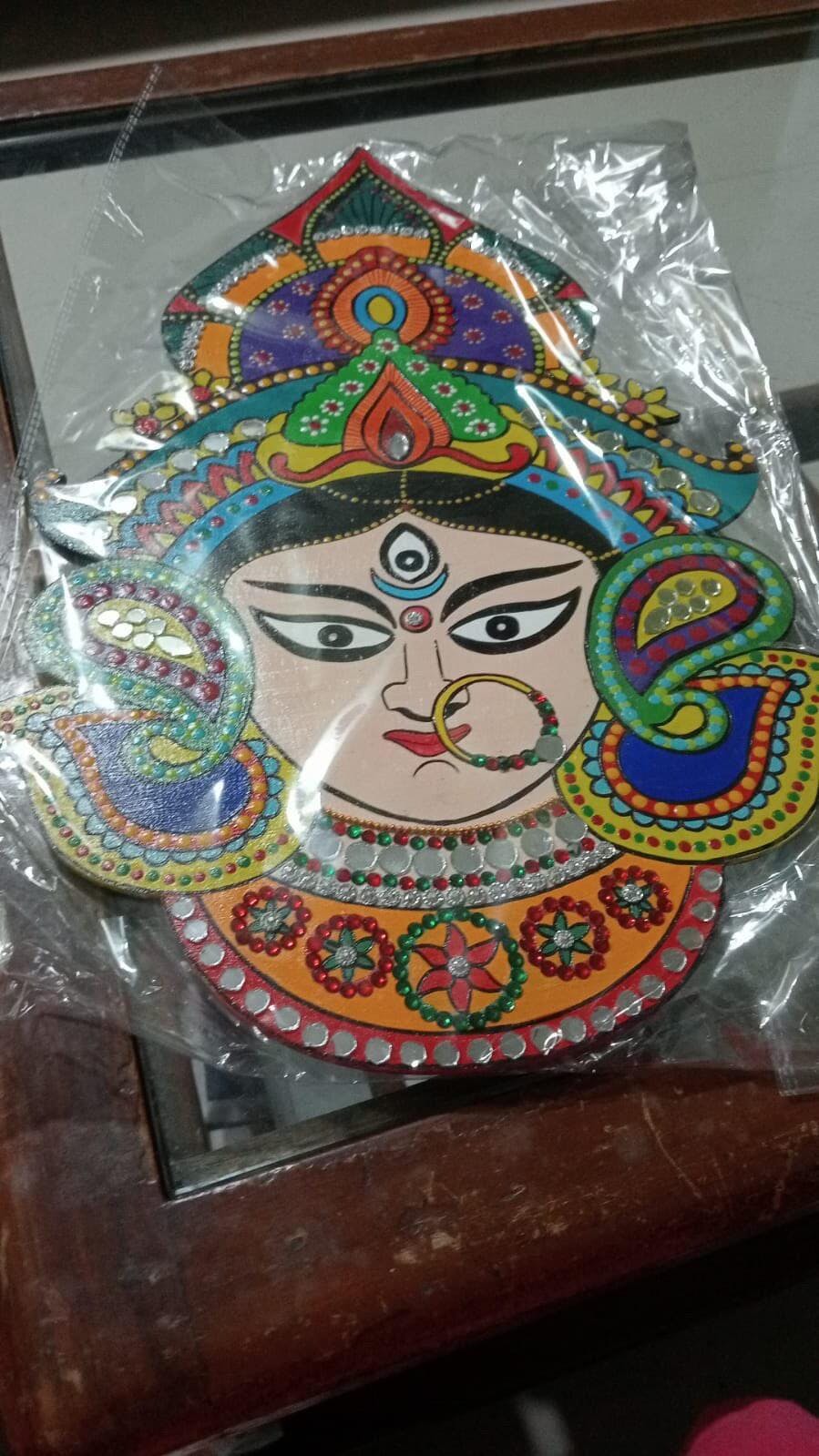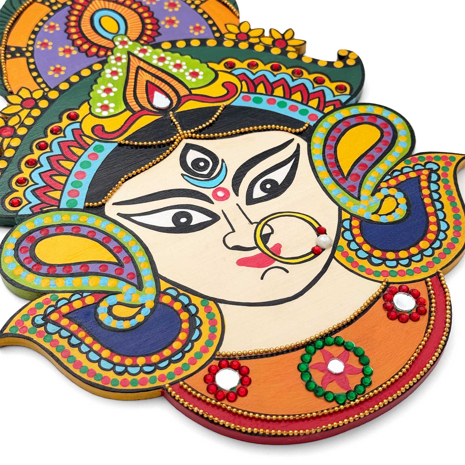 Durga Ma Hand-Painted Wooden Wall Hanging