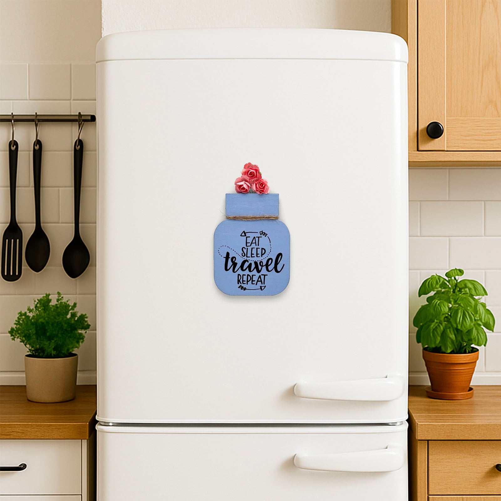 Eat Sleep Travel Repeat Hand-Painted Wooden Mason Jar Fridge Magnet - Blue