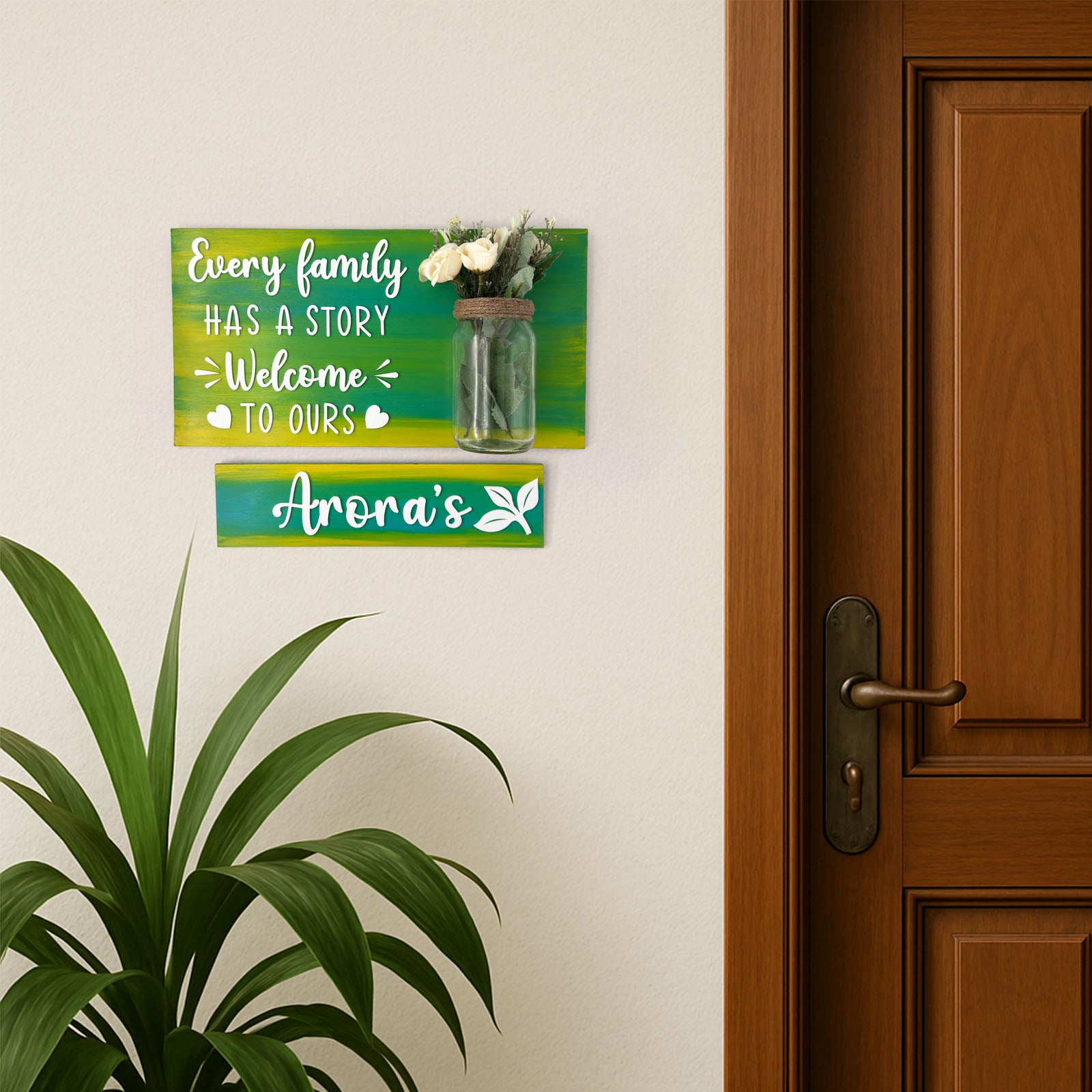 - Personalize it with any text of your choice for a charming and inviting first impression.
