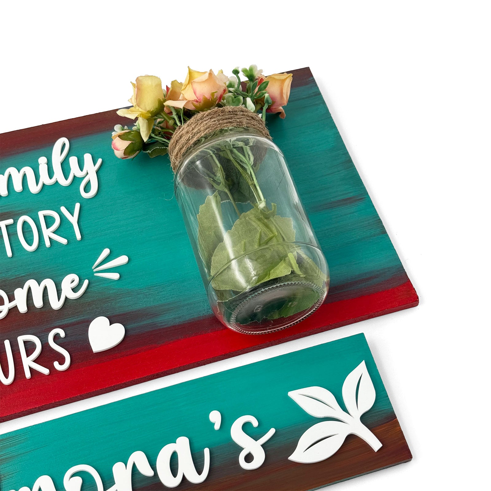 Every Family Has A Story Welcome To Ours Hand-Painted Wooden Name Plate With Jar For Home - Jar Board & One Plank