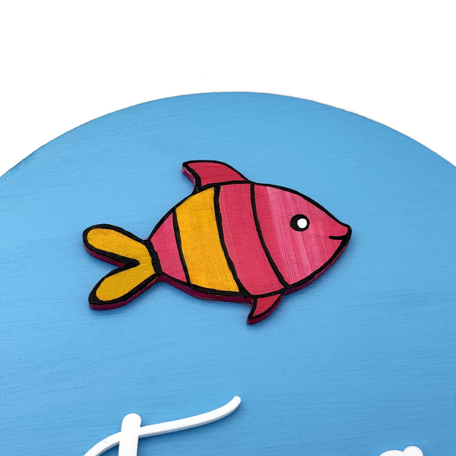 Fish Themed Hand-Painted Wooden Mini Kids Name Plate