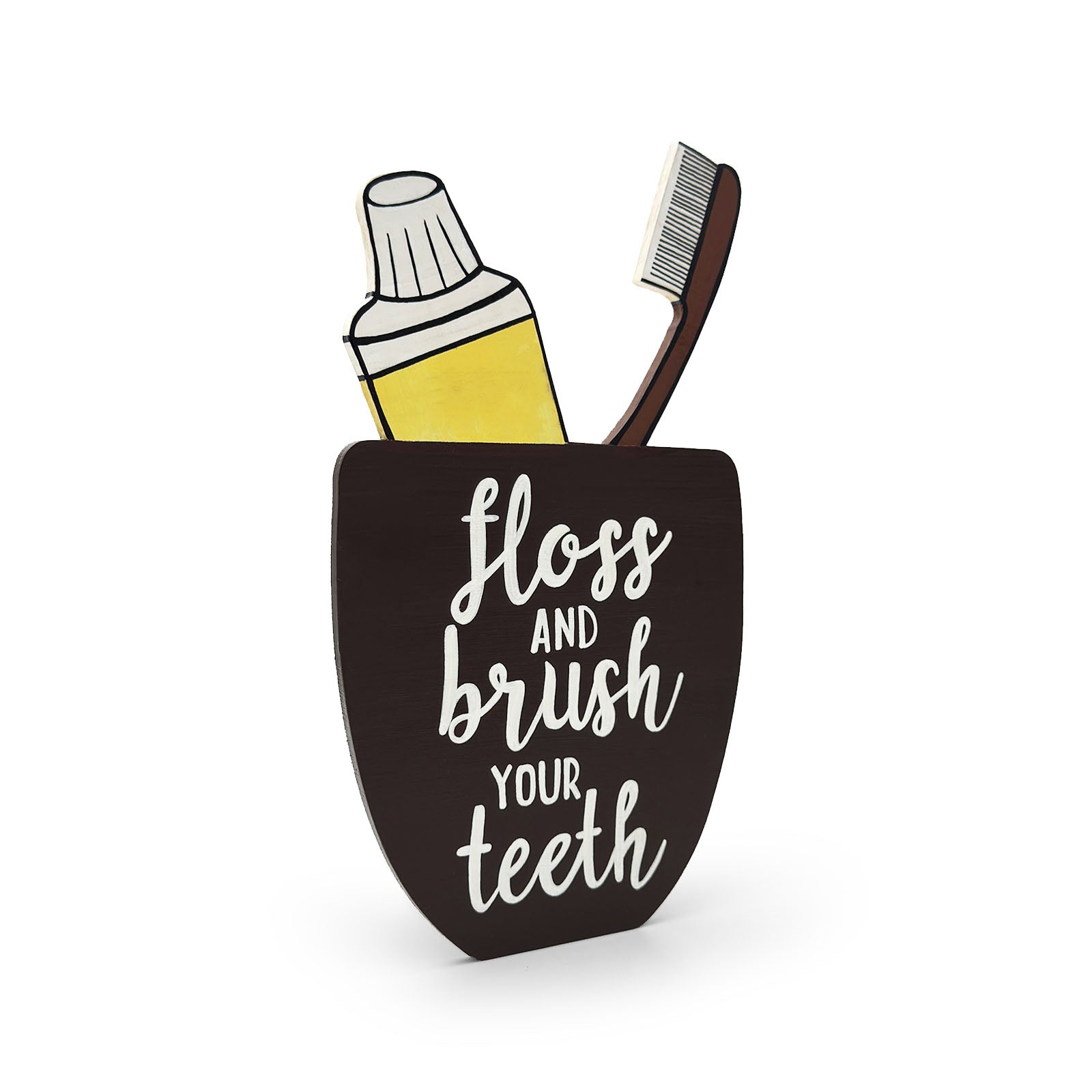 Floss And Brush Your Teeth Hand-Painted Wooden Washroom Hanging