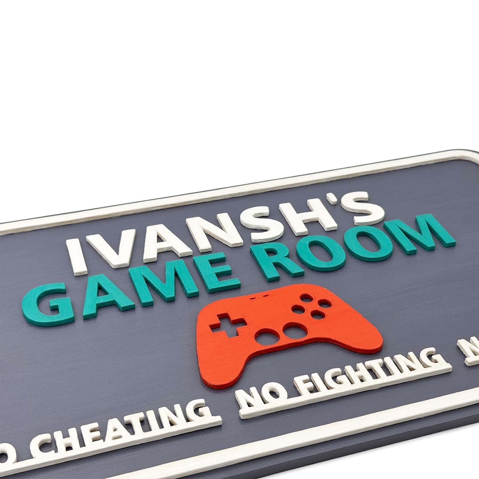 - Add a charming touch to your kid’s room with this adorable game room-themed nameplate.