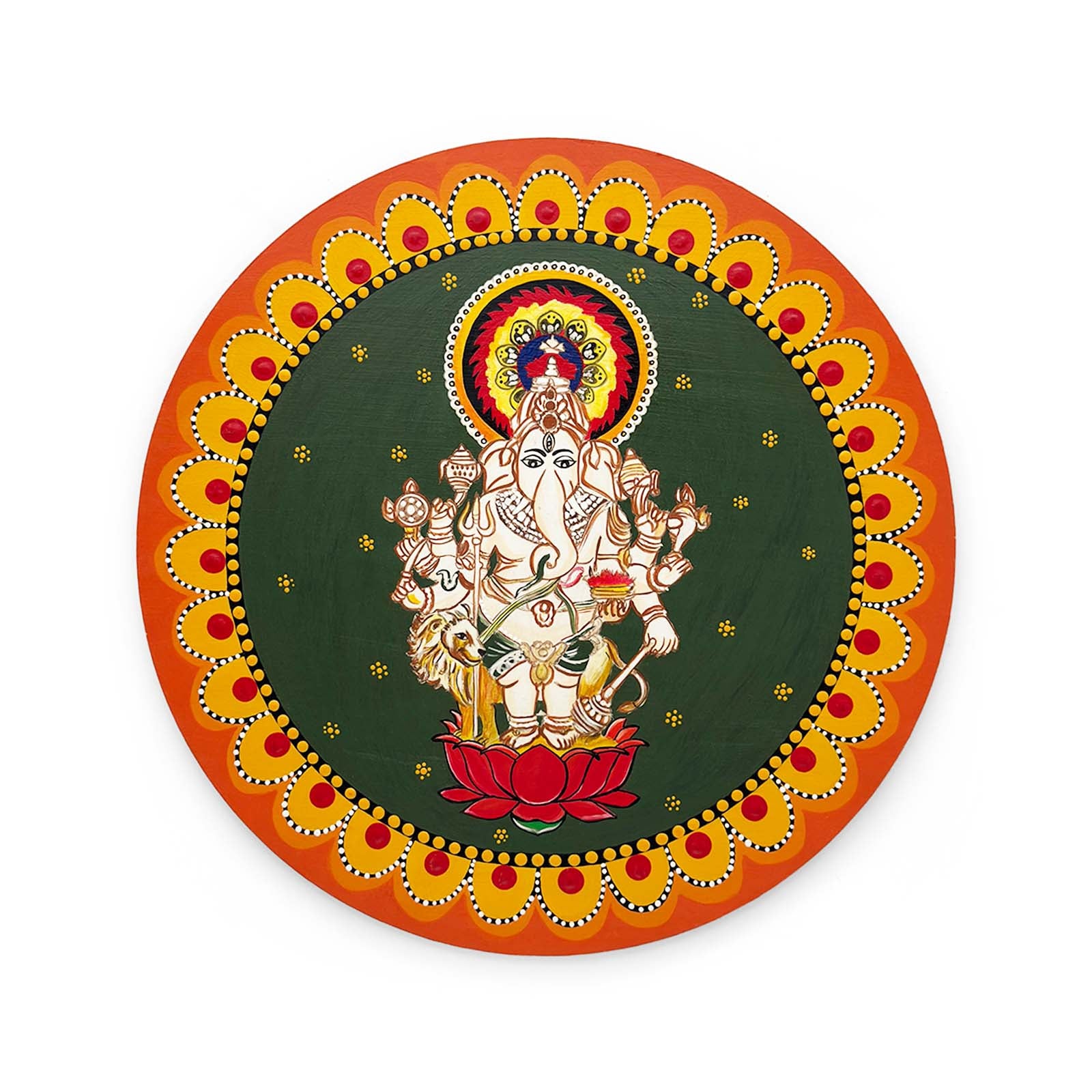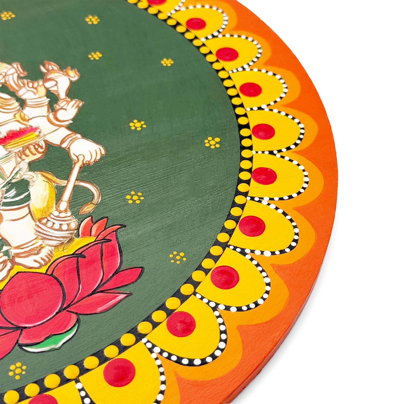 Ganpati Ji Hand-Painted Wooden Mandala Wall Hanging - Green