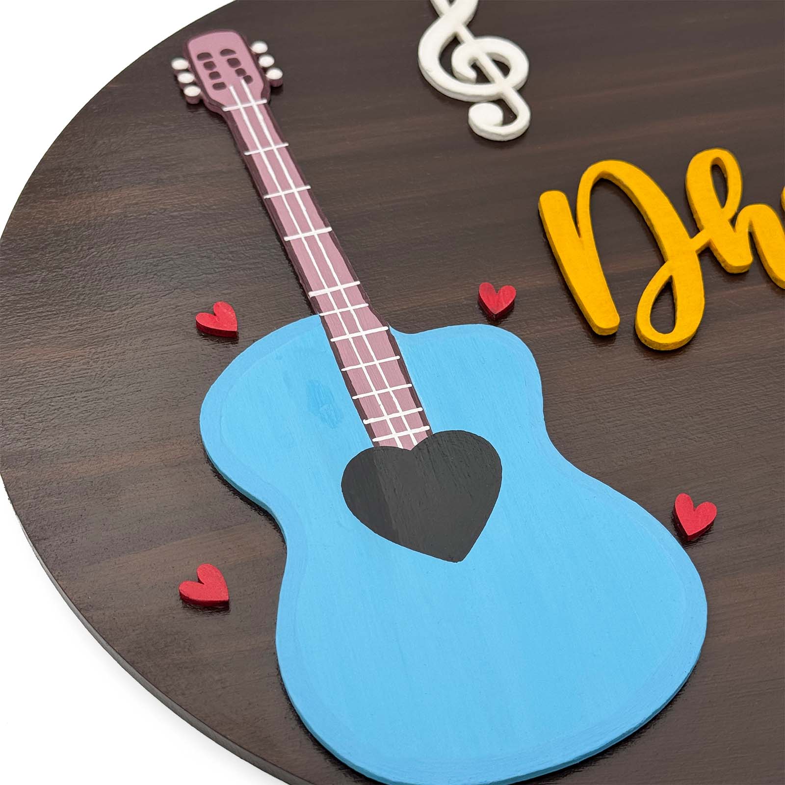 Guitar Themed Hand-Painted Wooden Kids Name Plate
