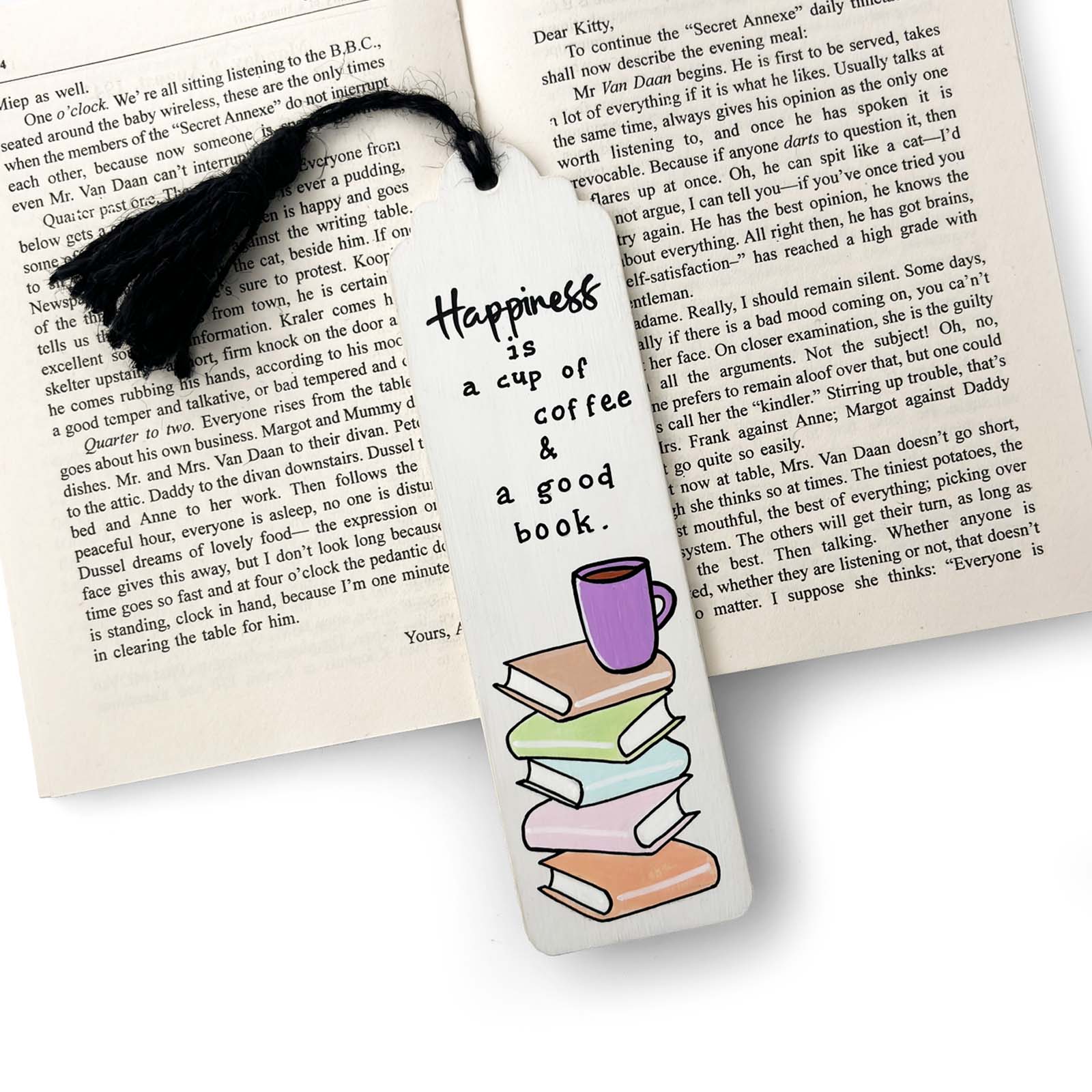 Hand-Painted Wooden Bookmark - Happiness