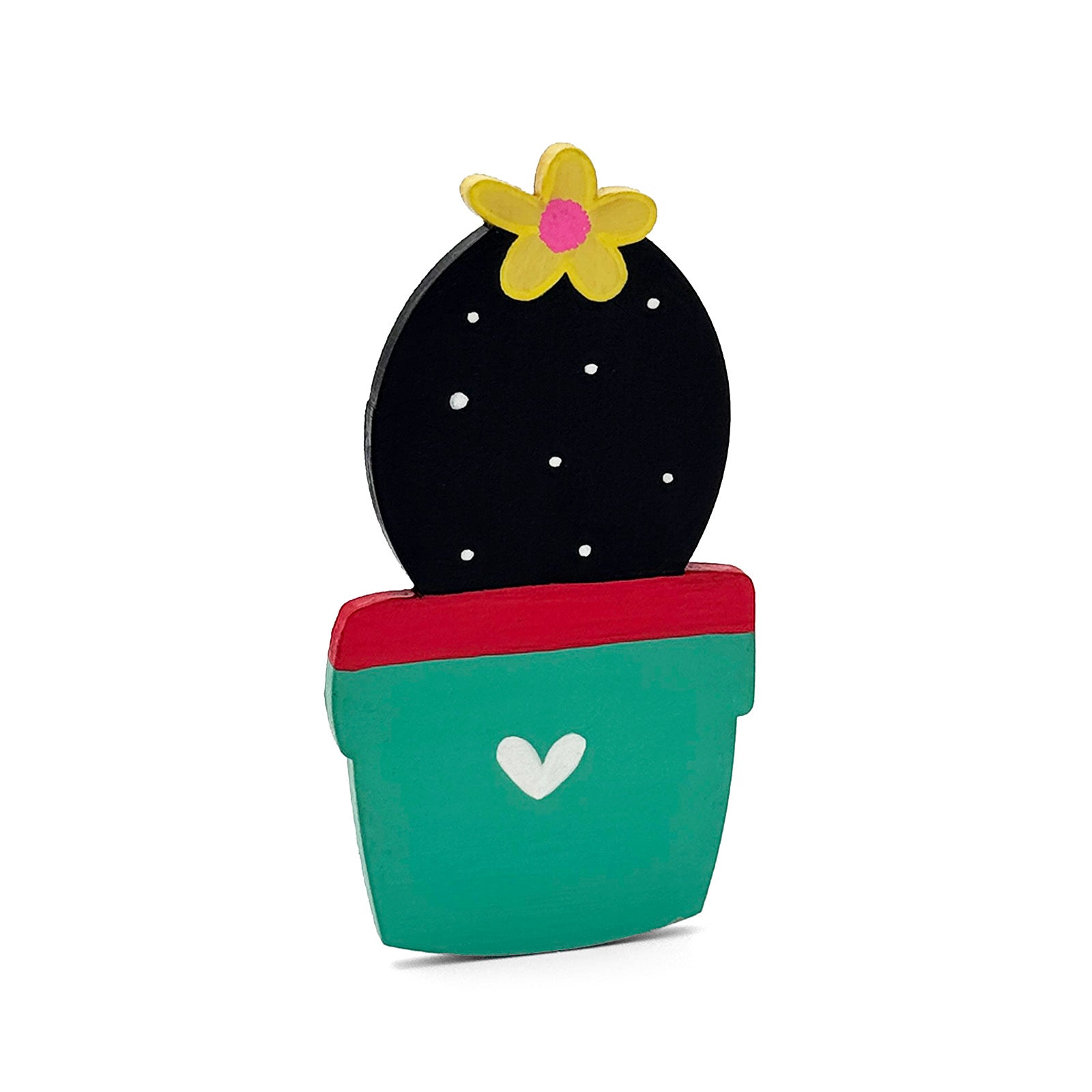 Hand-Painted Wooden Cactus Fridge Magnet - Design 1