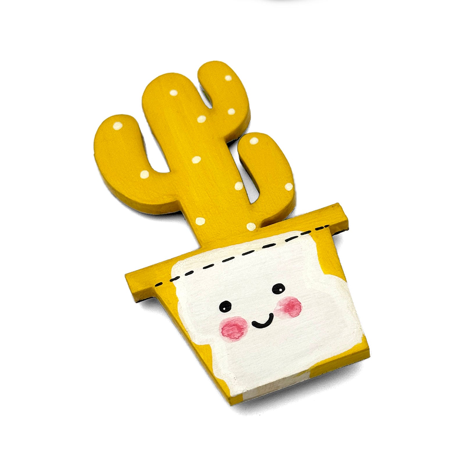 Hand-Painted Wooden Cactus Fridge Magnet - Design 2