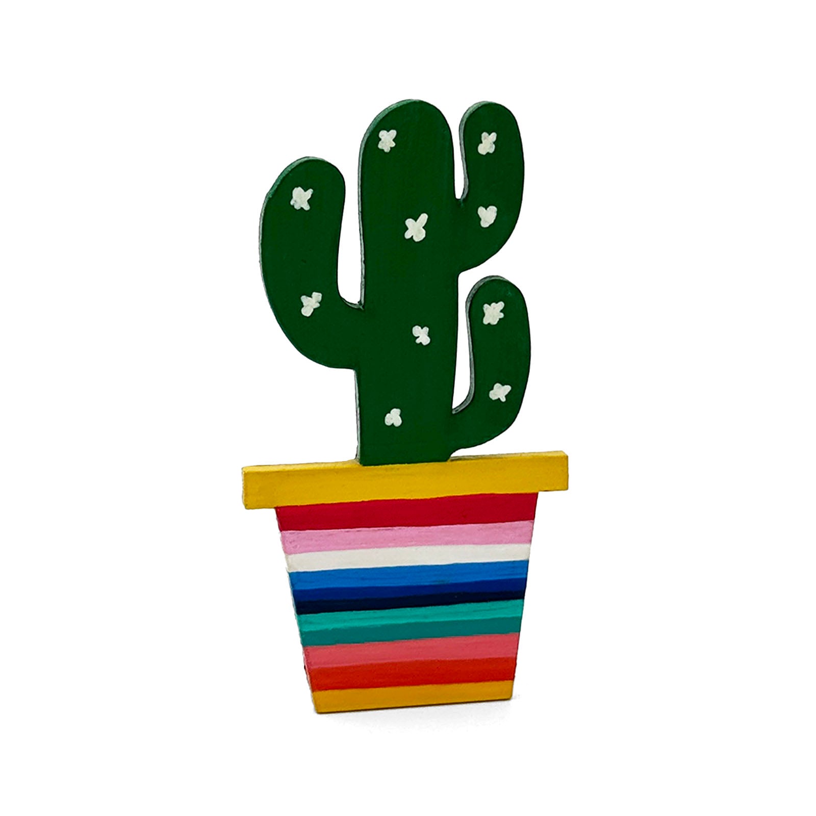 Hand-Painted Wooden Cactus Fridge Magnet - Design 7