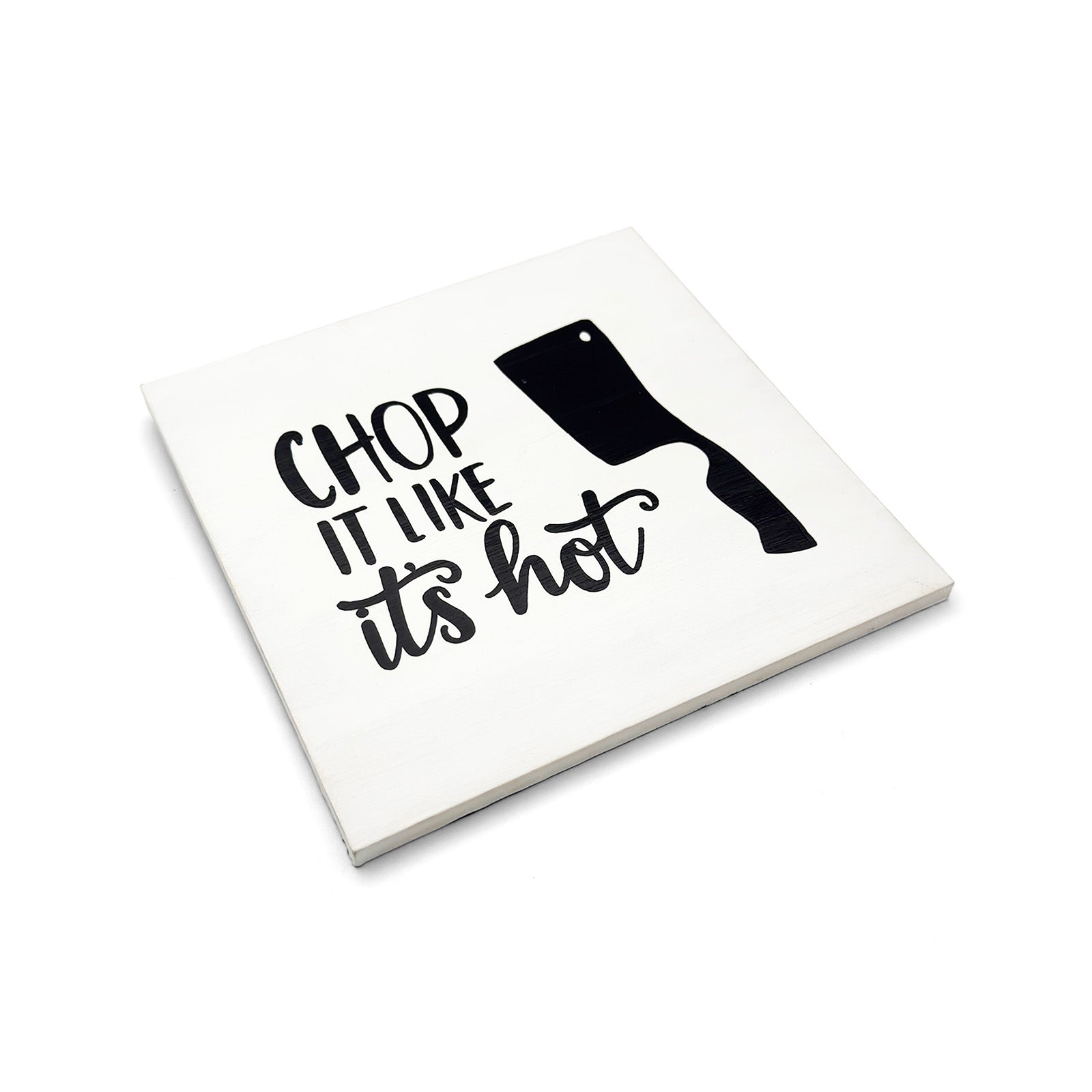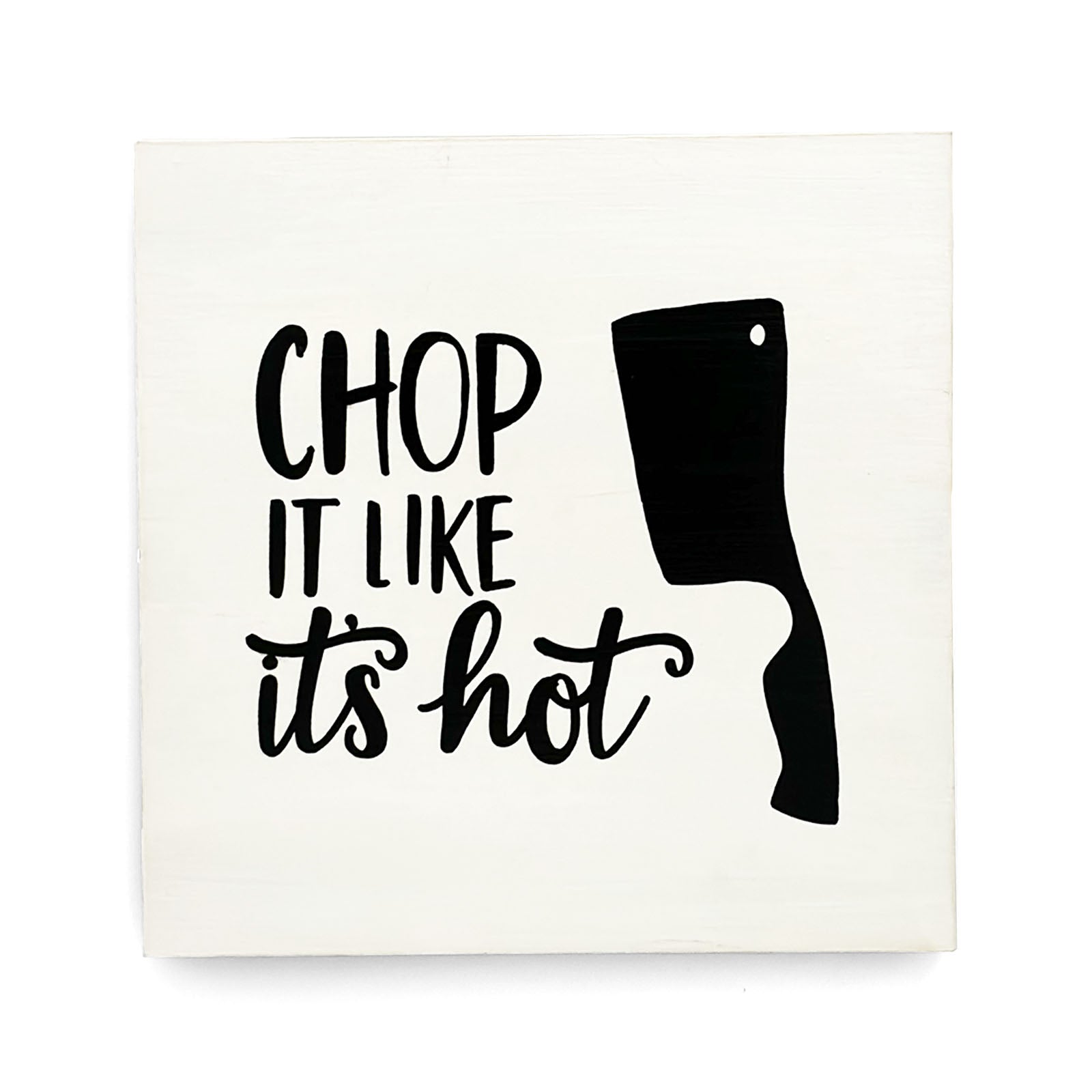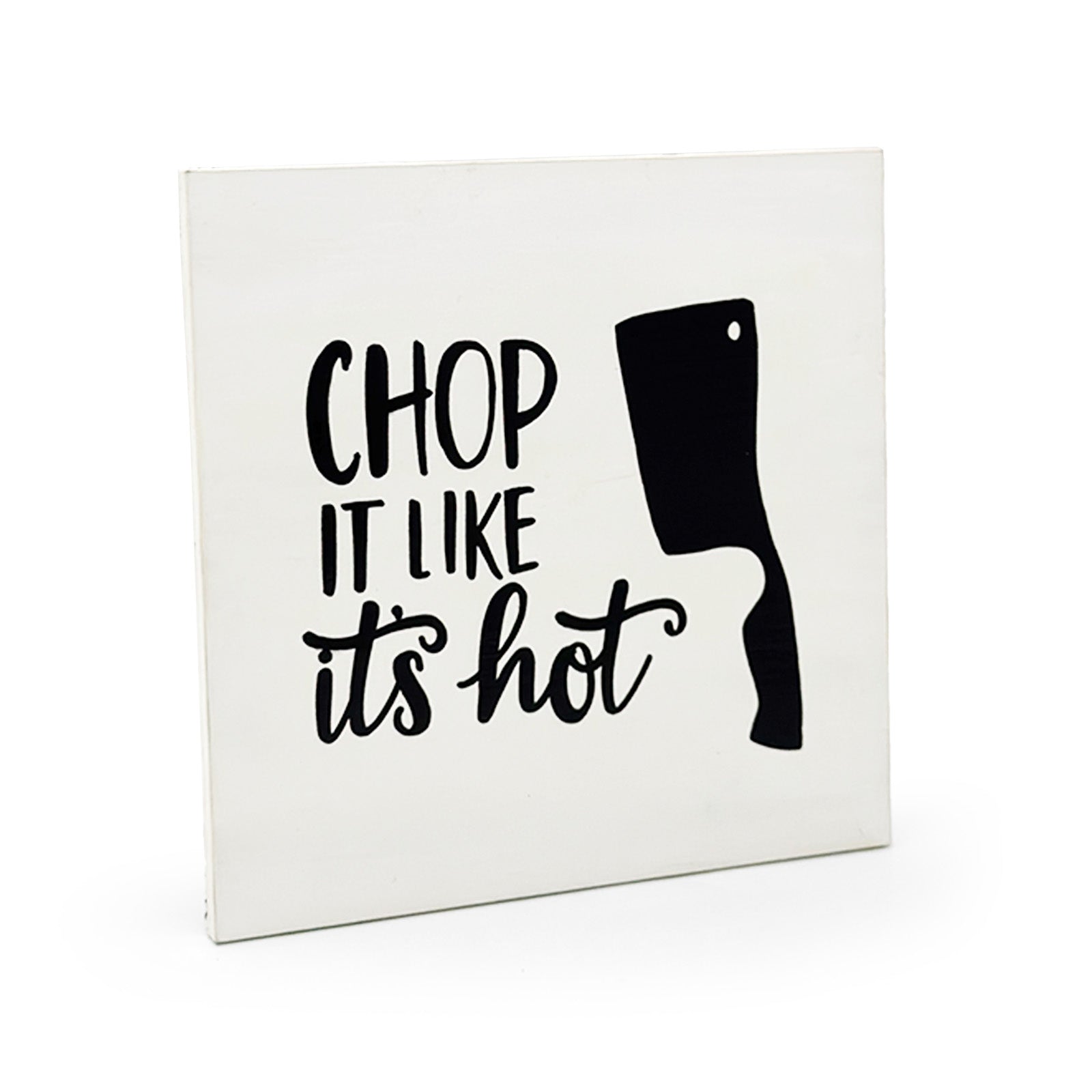 Chop It Like It’s Hot Hand-Painted Wooden Kitchen Wall Hanging - White