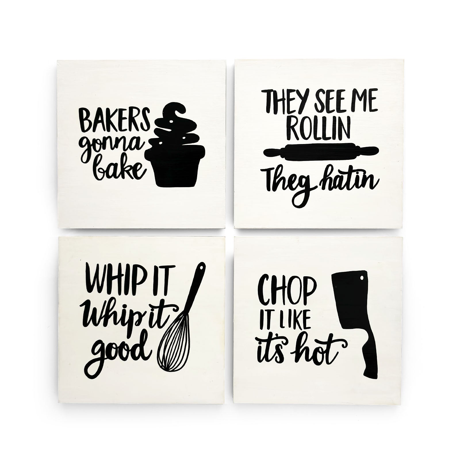 They See Me Rollin’ They Hatin’ Hand-Painted Wooden Kitchen Wall Hanging - White