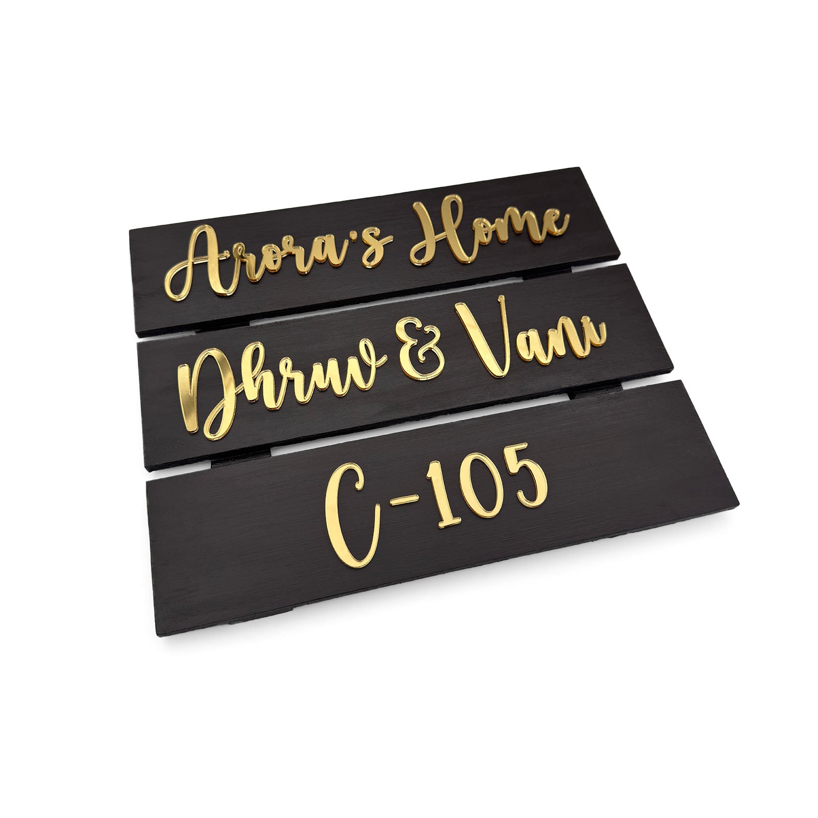 Three Plank Hand-Painted Wooden Name Plate For Home - Wooden Finish