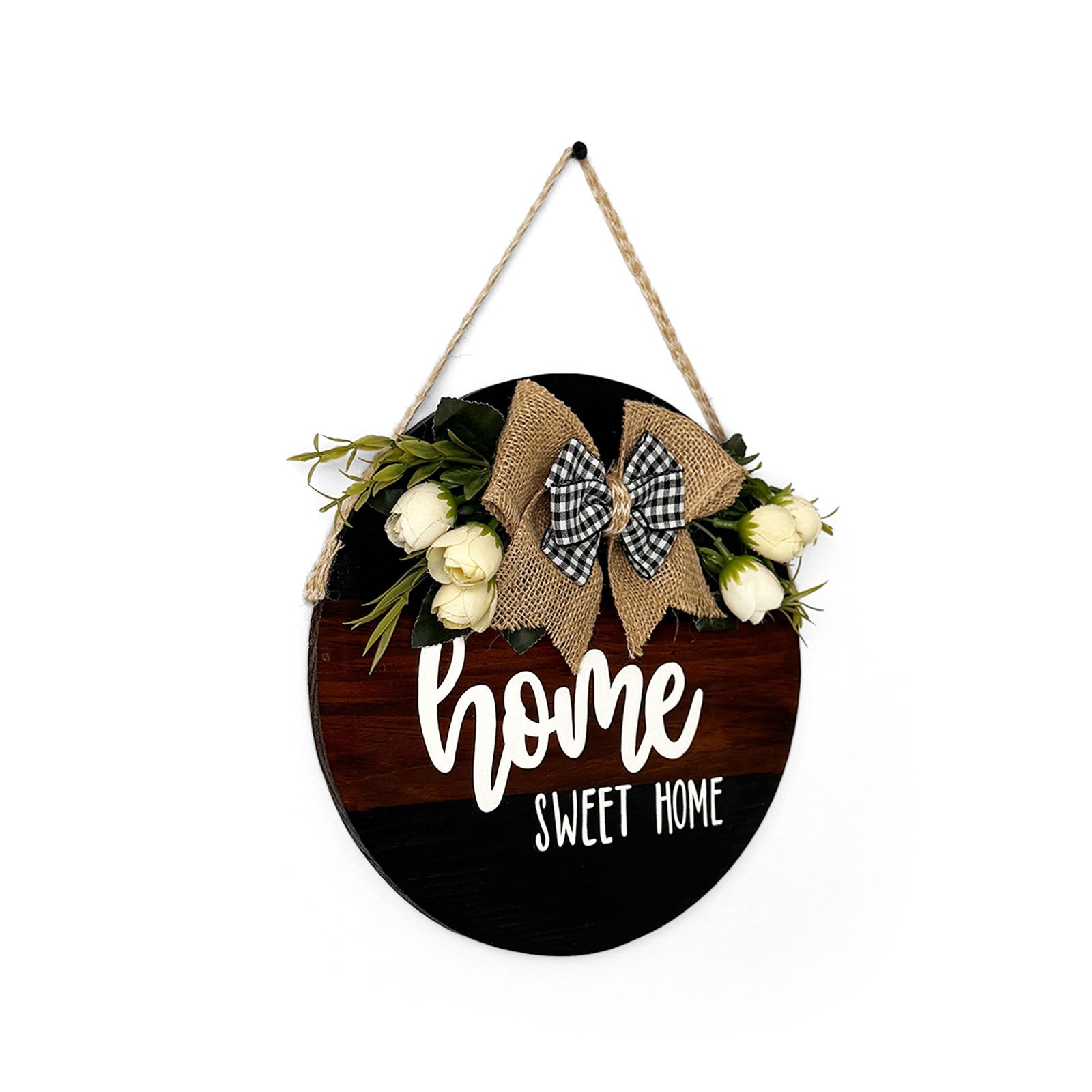 Home Sweet Home Hand-Painted Wooden Door Hanger - Black & Wooden Finish