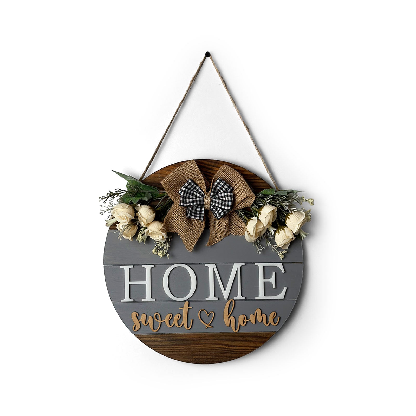 Home Sweet Home Hand-Painted Wooden Door Hanger - Grey & Wooden Finish