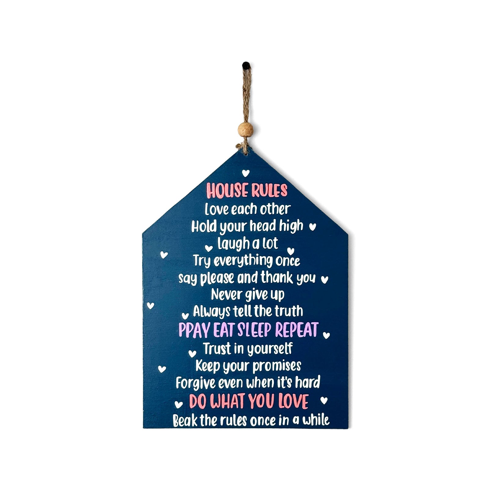 House Rules Hand-Painted Wooden Wall Hanging