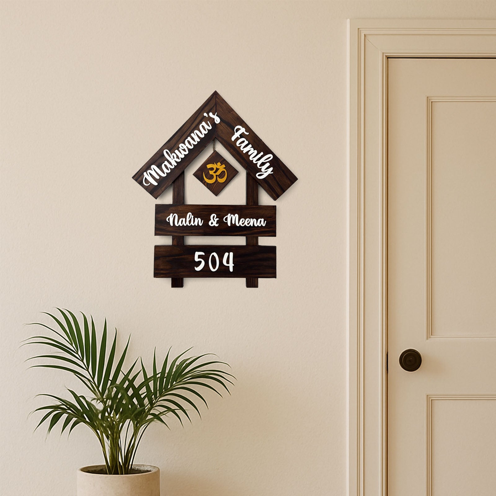 - Enhance your home’s entrance with our exquisite hand-painted wooden hut-shaped name plate.