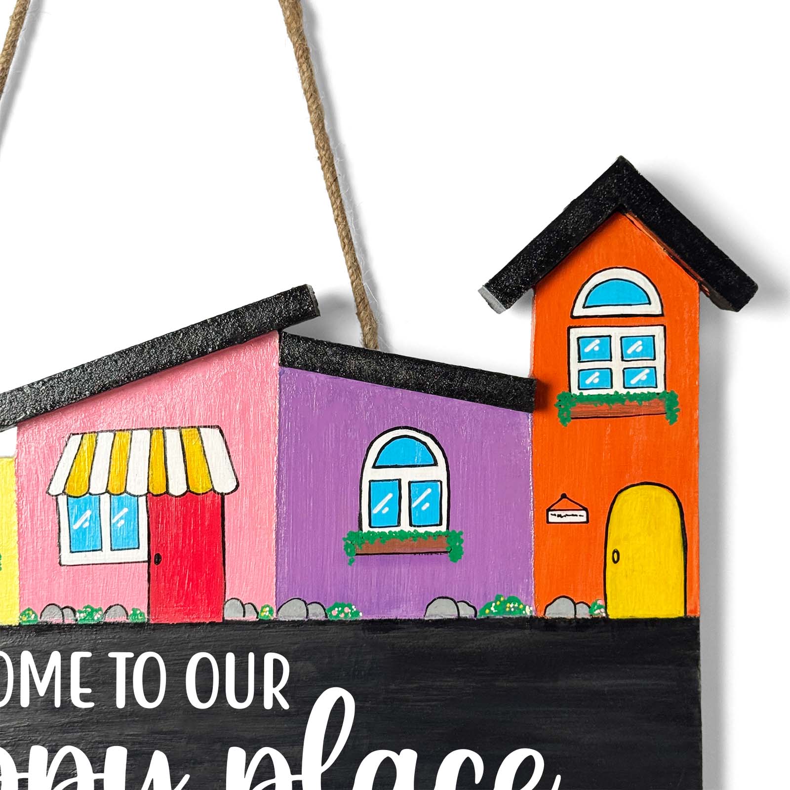- Enhance your home’s entrance with our exquisite hand-painted wooden hut-shaped name plate.