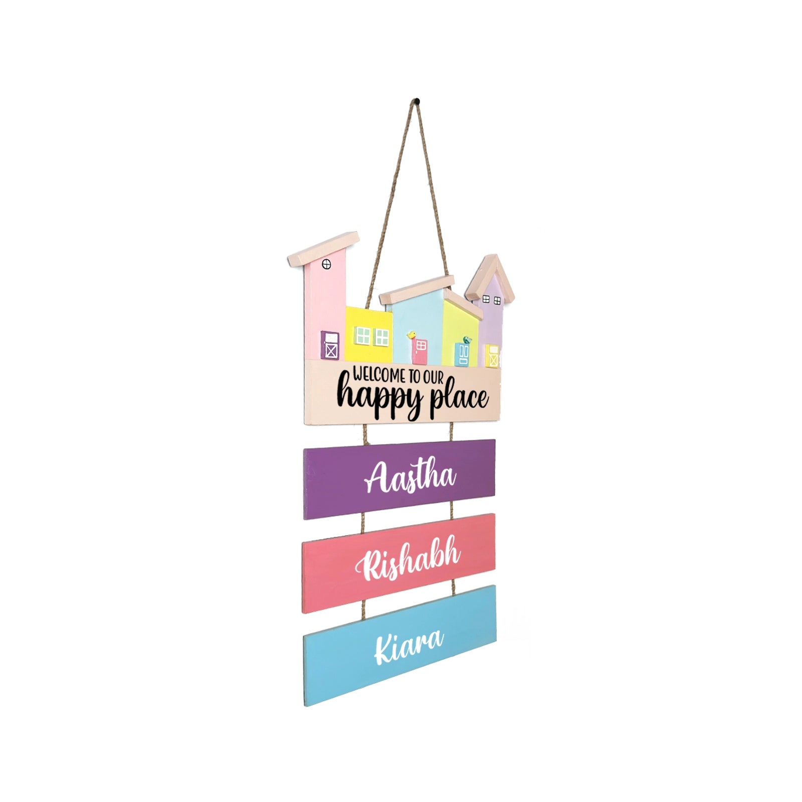- Enhance your home’s entrance with our exquisite hand-painted wooden hut-shaped name plate.