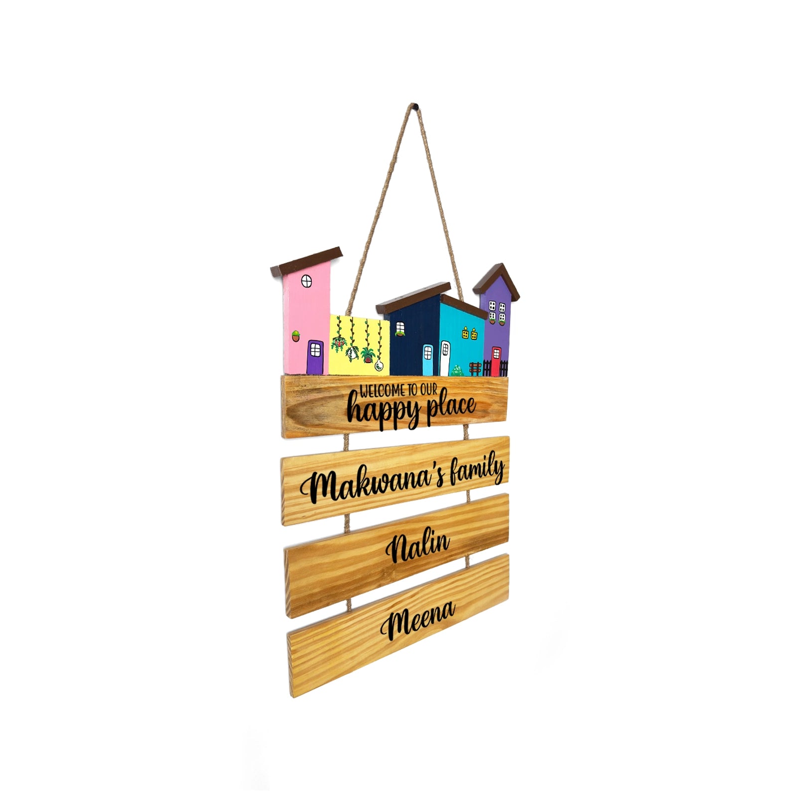 Hut-Shaped Hand-Painted Wooden Name Plate For Home - Hut Board & Three Planks Design 5