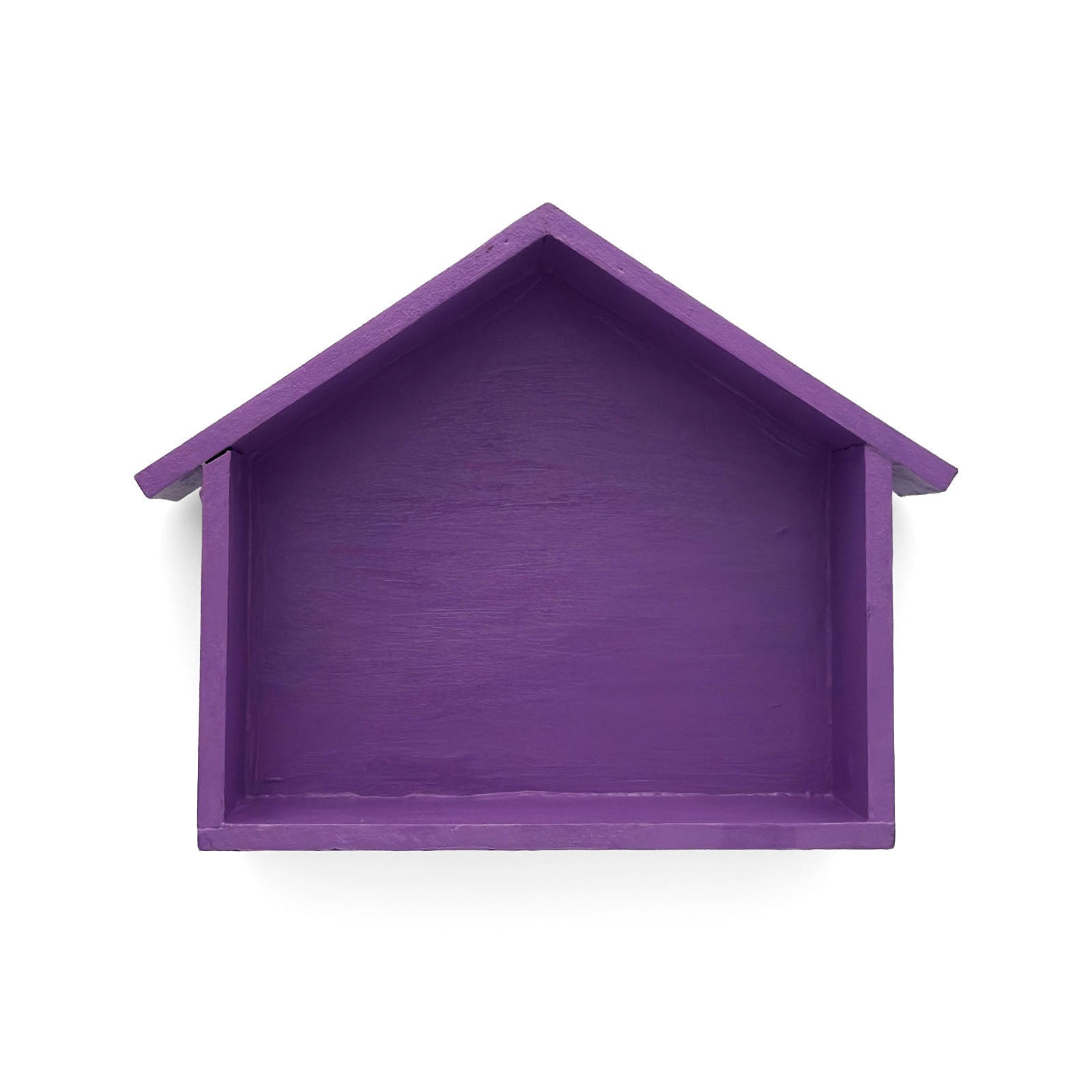 Hut Shaped Hand-Painted Wooden Wall Shelf - Purple