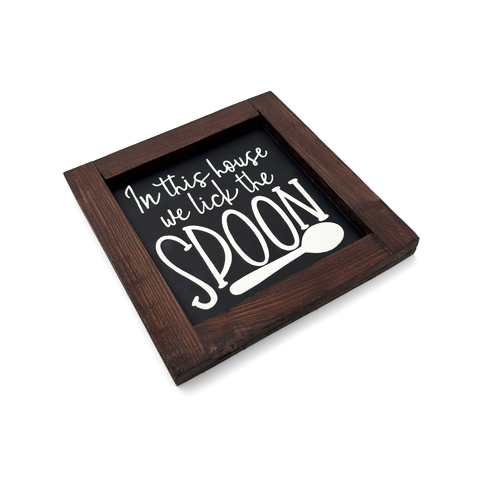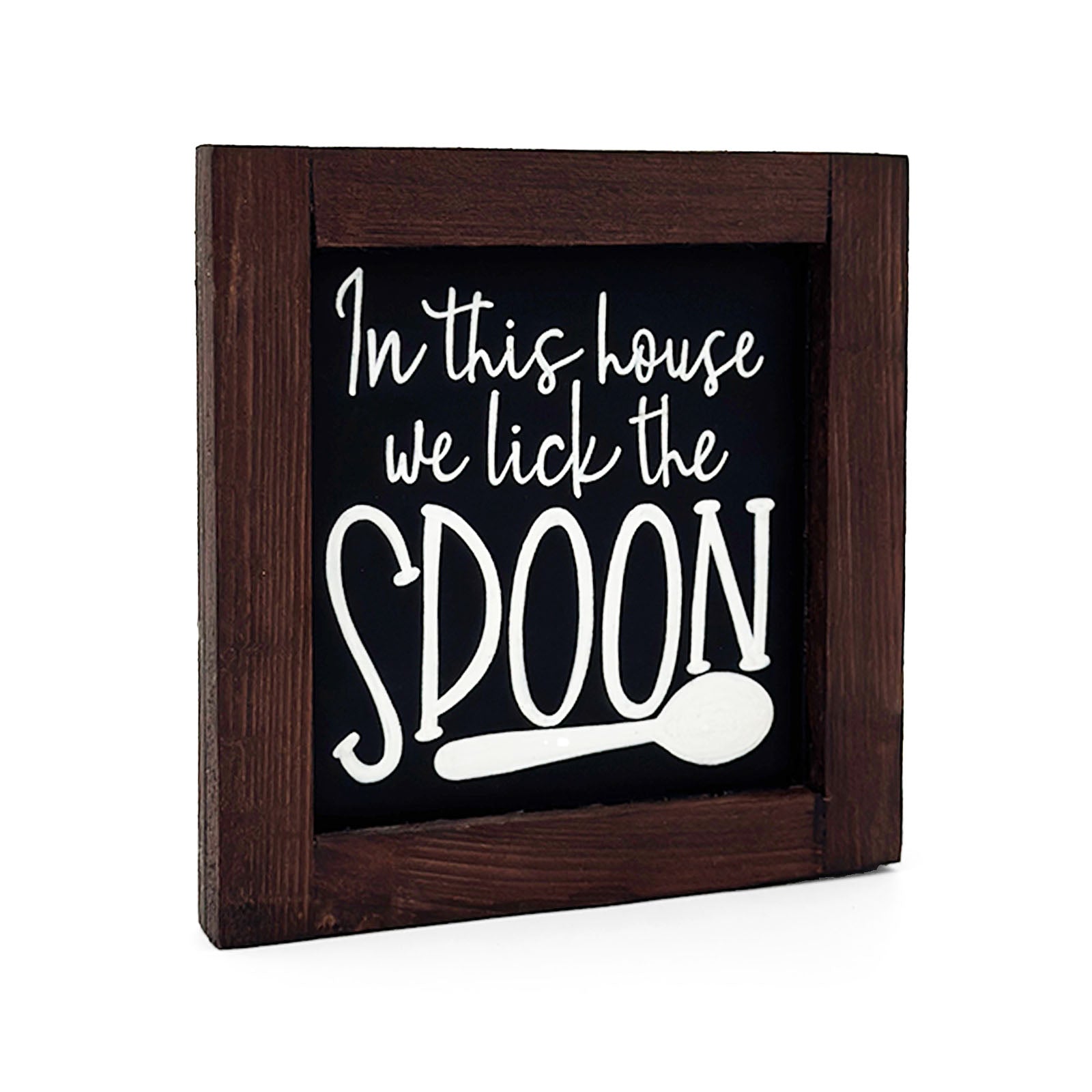 In This House We Lick The Spoon Hand-Painted Wooden Kitchen Wall Frame